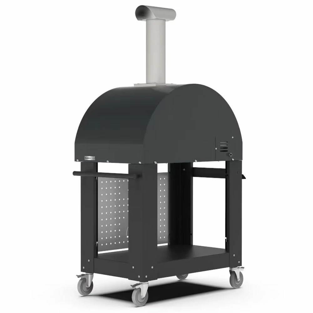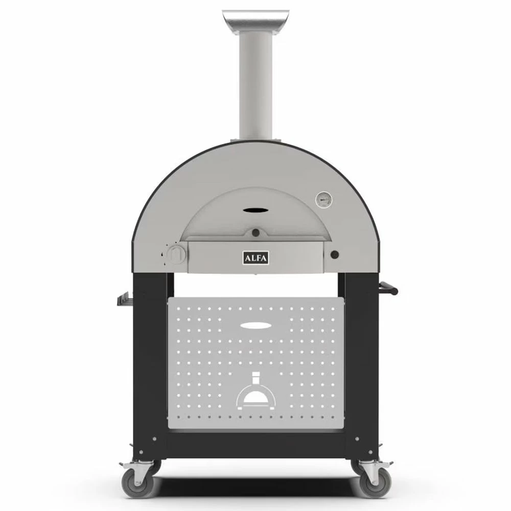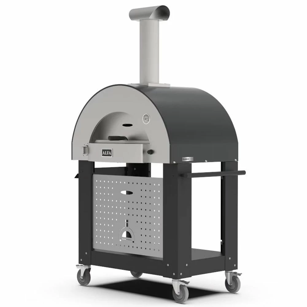 Alfa 2 Pizze 38-Inch Ardesia Gray Gas Pizza Oven on Black Cart provides the ultimate pizza-making machine! With the ability to cook two 10-12 inch pizzas to perfection at the same time, this oven can reach over 900 Degrees Fahrenheit, ensuring crispy crusts every time. The adjustable feet ensure stability, and our Heat Genius Technology guarantees consistent heat throughout the cooking process. Take your pizza game to the next level with this Alfa Pizza Oven- the perfect addition to any backyard or patio!