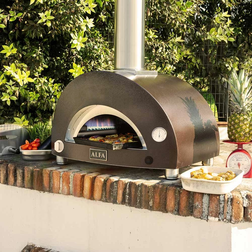 Alfa FXMD-S-GRAM-U Nano 23-Inch Countertop Gas Pizza Oven provides a premium Italian-style pizza oven for your outdoor kitchen. Featuring a reinforced stainless steel cooking chamber and a double layer of ceramic fiber insulation, this durable oven heats efficiently, retains heat well, and prevents the external frame from overheating. Despite its modest size, this appliance offers impressive performance; it heats up in just 10 minutes and cooks like an authentic Neapolitan commercial oven. The four oven floor fire bricks feature a thick design to absorb and release heat gradually to guarantee high-quality results. The slide in, slide out pizza peel allows for easy cooking of pizzas, bread, and calzones, while the door peephole allows for easy monitoring of the food without disturbing the cooking process. Bring the taste of Italy home and enhance your perfect outdoor kitchen with help from Alfa.