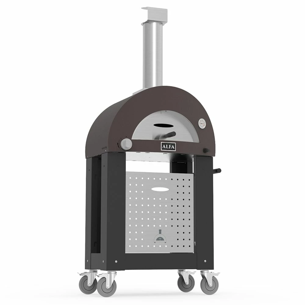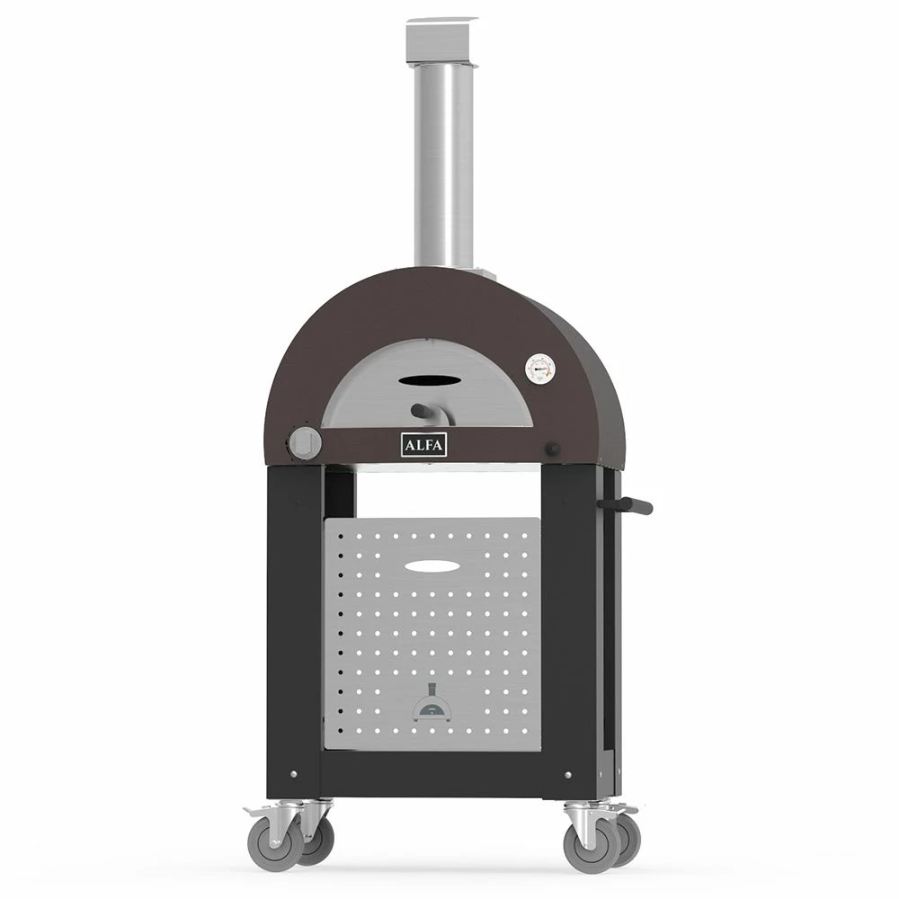 Alfa FXONE-GRAM Nano 23-Inch Gas Pizza Oven on Cart provides a premium Italian-style pizza oven for your outdoor kitchen. Featuring a reinforced stainless steel cooking chamber and a double layer of ceramic fiber insulation, this durable oven heats efficiently, retains heat well and prevents the external frame from overheating. Despite its modest size, this appliance offers impressive performance; it heats up in just 10 minutes and cooks like an authentic Neapolitan commercial oven. The four oven floor fire bricks feature a thick design to absorb and release heat gradually to guarantee high-quality results. The slide in, slide out pizza peel allows for easy cooking of pizzas, bread, and calzones, while the door peephole allows for easy monitoring of the food without disturbing the cooking process. Bring the taste of Italy home and enhance your perfect outdoor kitchen with help from Alfa.