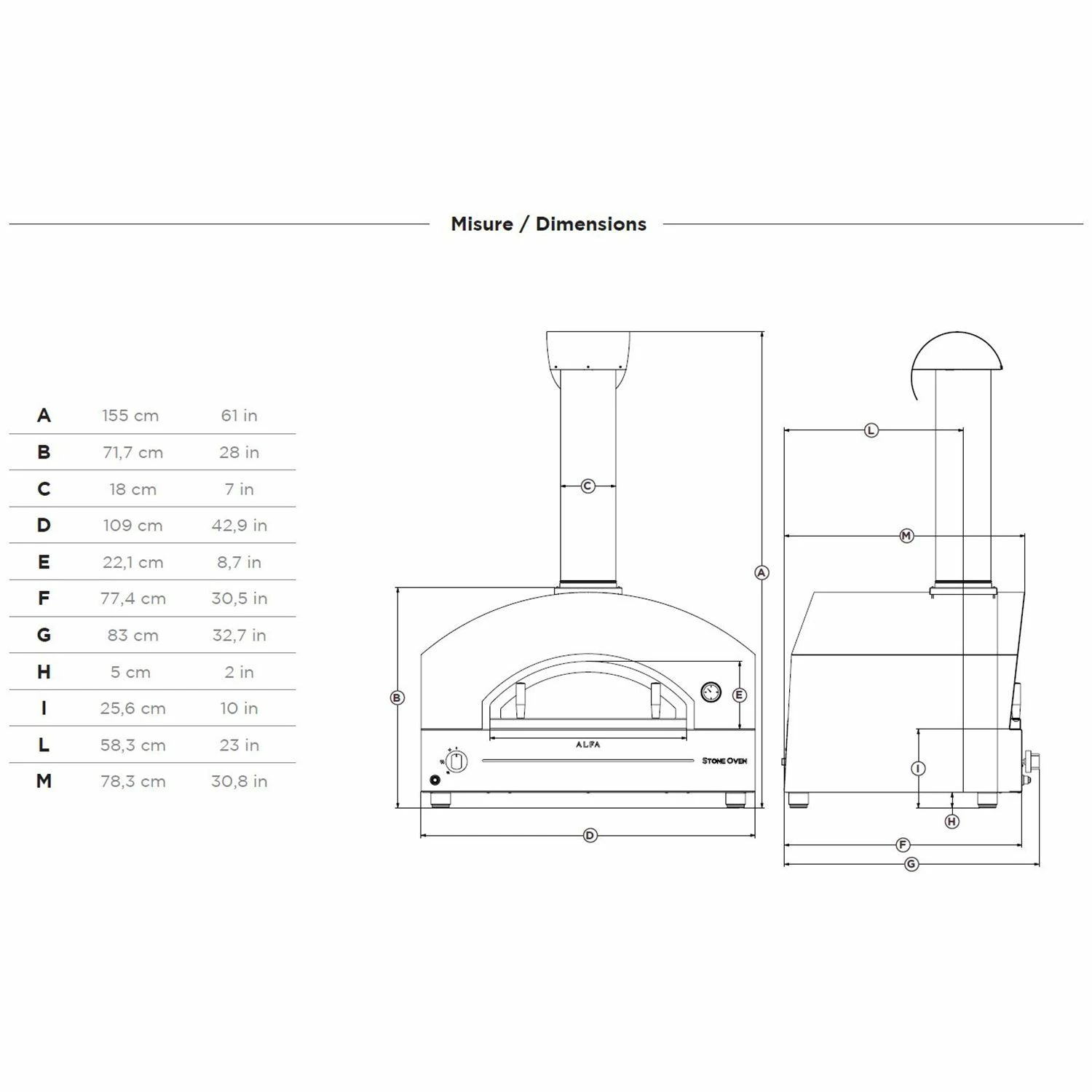 Alfa FXSTONE Stone Large 39-Inch Countertop Wood-Fired Pizza Oven provides a premium countertop wood-fired pizza oven that combines innovative design and superior craftsmanship. The Stone oven features a high-grade stainless steel dome surrounded by durable European ceramic fiber to create a heat resistant, heavy-duty cooking area while the cooking floor contains a thick 39-inch refractory fire brick cooking surface to offer unmatched heat retention inside your Alfa pizza oven – perfect not only for pizzas, but for bread, roasts, meat/fish/vegetables, cakes or whatever else you wish to bake. The included pyrometer helps track temperature in the oven’s chamber, allowing for more simple and direct control over your cooking environment. Bring the distinct taste of wood-fired pizza to your home and enhance your perfect outdoor kitchen with help from Alfa.