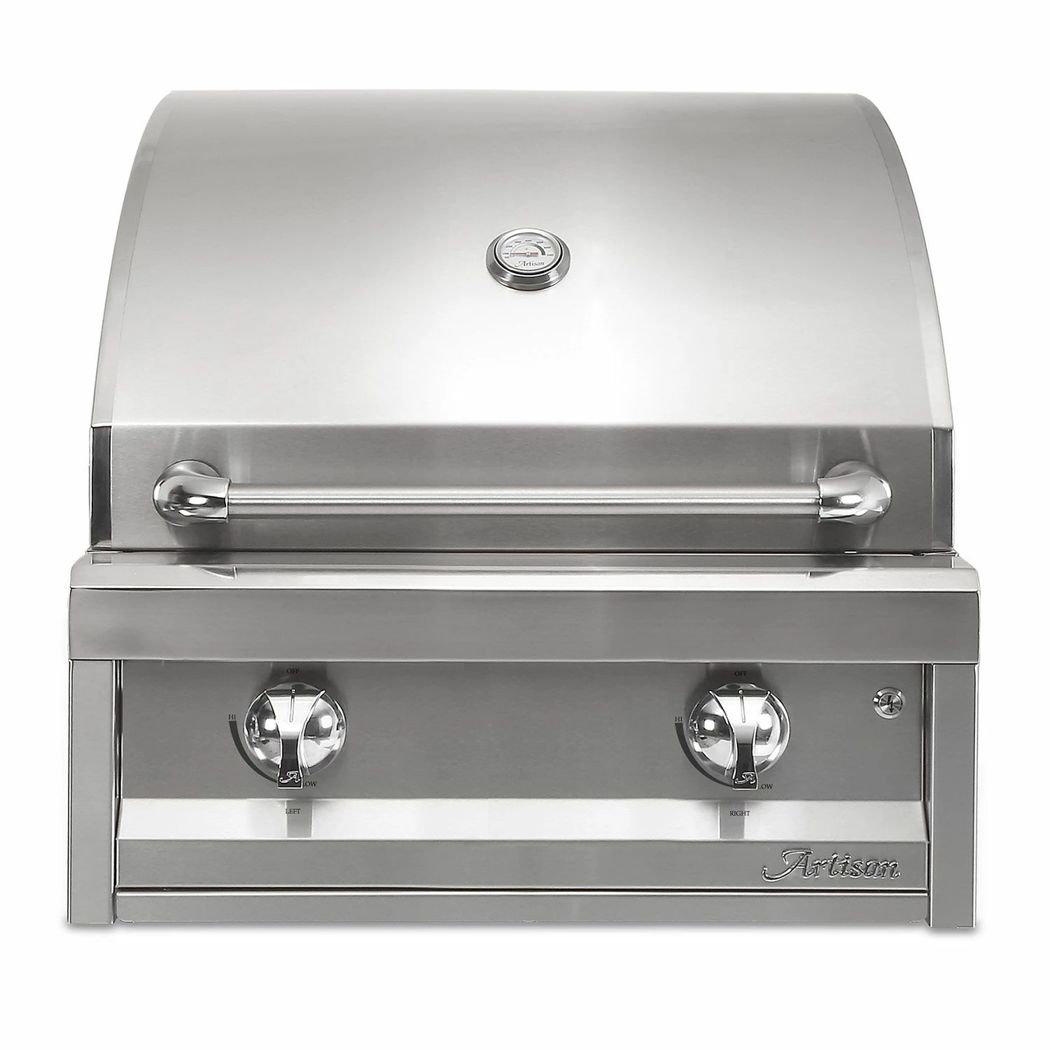 Artisan AAEP-26 American Eagle Series 26-Inch Built In Gas Grill provides a luxury grill package at an affordable price. Featuring commercial-grade 304 stainless steel construction, Artisan’s Professional Grills are meticulously crafted in the U.S.A. and designed for long-term durability. Heavy-duty 304 stainless steel burners offer high heat, while refractive five-way heat distributing briquettes offer even and radiant heat across the cooking surface. Durable stainless steel cooking grates with a special non-stick electro-polished finish offer restaurant quality cooking and easy cleaning, while an integrated warming and grilling rack provides more versatile cooking options. Ergonomic grill knobs and brass valves offer precision flame control, while stainless steel ignition and lighting buttons are integrated into the control panel for easy operation. This grill also features an exclusive air-cooling plenum which blasts a curtain of cool air between the front control panel and the firebox to keep the front panel and bullnose cool to the touch.