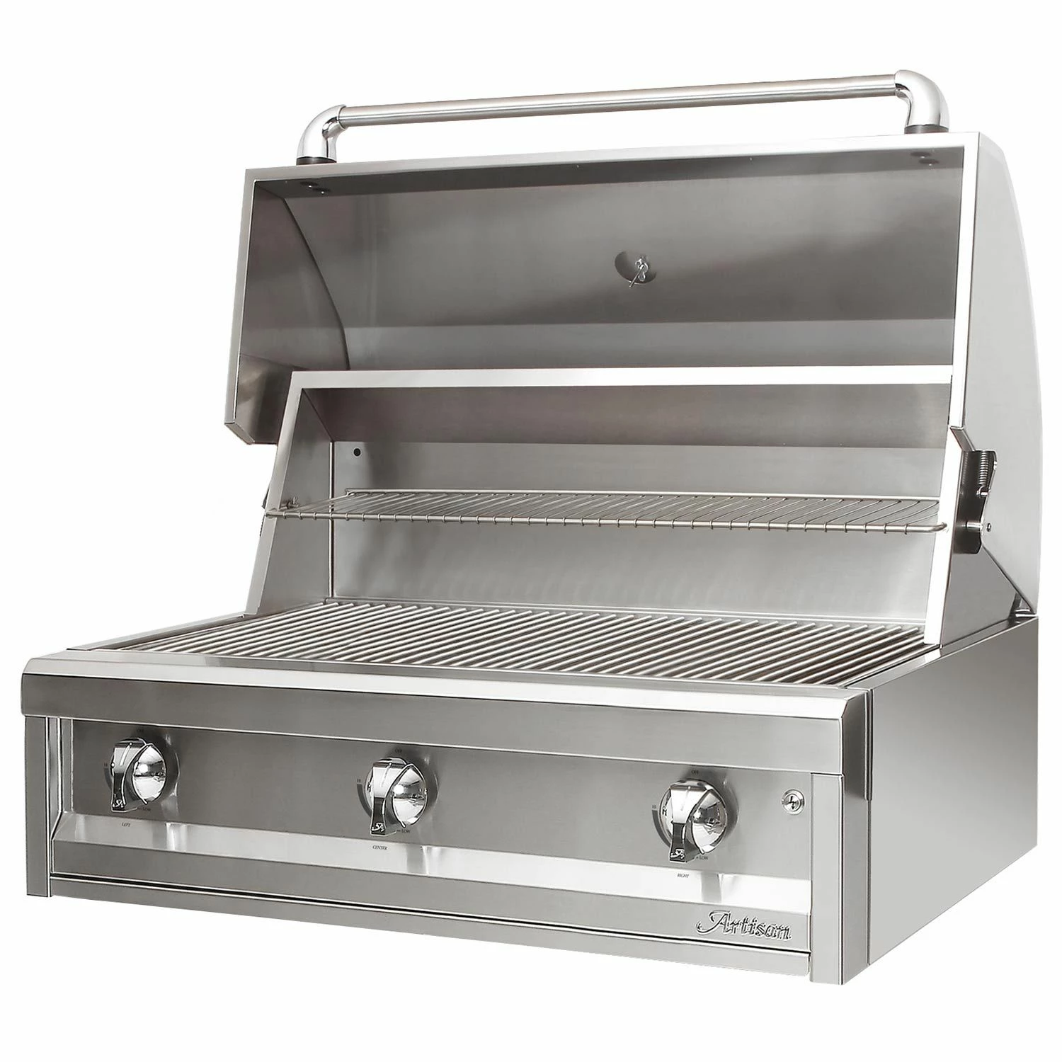 The Artisan American Eagle Series offers several unique features which help make your grilling experience even more enjoyable. Quality-of-life features like a spring-assisted grill hood and a 9V electronic ignition make the grill easier to use. Additionally, this grill can be upgraded with rotis accessory ART-ROT36 (sold separately) to further increase cooking options. Finally, this grill can be configured with or without an integrated Sear Zone infrared burner capable of providing intense heat and authentic steakhouse results.