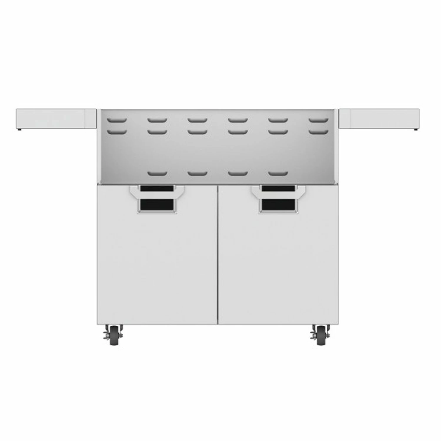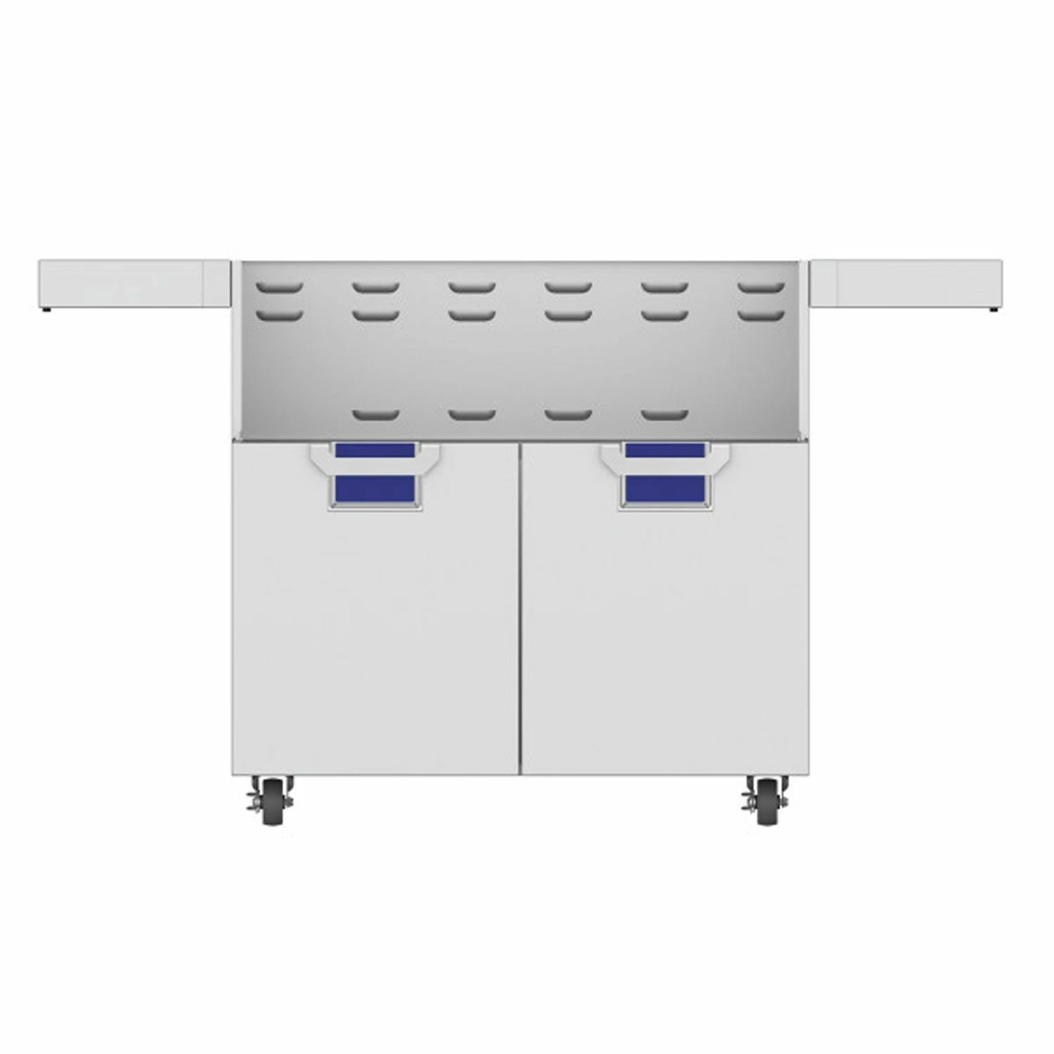Aspire by Hestan ECD36 Double Door Grill Cart for 36-Inch Aspire Grill Head features heavy-gauge welded steel construction and commercial grade design to ensure a solid foundation for your Aspire by Hestan grill head. The fold-down side shelves offer convenient prep space on demand and fold out of the way when not in use for easy storage, while the durable locking casters offer 360 degree maneuverability for effortless movement as needed. To complete the package, this cart features the signature color choices of the Aspire by Hestan collection, allowing you to integrate it seamlessly into your outdoor kitchen.