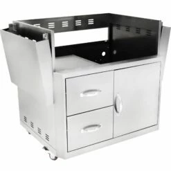 Blaze BLZ-3PRO-CART Grill Cart for 3-Burner Grill, Cart Only provides the necessary grill base for the BLZ-3PRO gas grill. The stainless steel cabinet features heavy duty locking casters, two stationary side shelves and two double storage doors. The LP tank can be stored directly within the cabinet along with any other grilling accessories you need to store outdoors. Enhance the look of your patio or deck with this premier stainless steel grill base; designed with utility and longevity in mind.