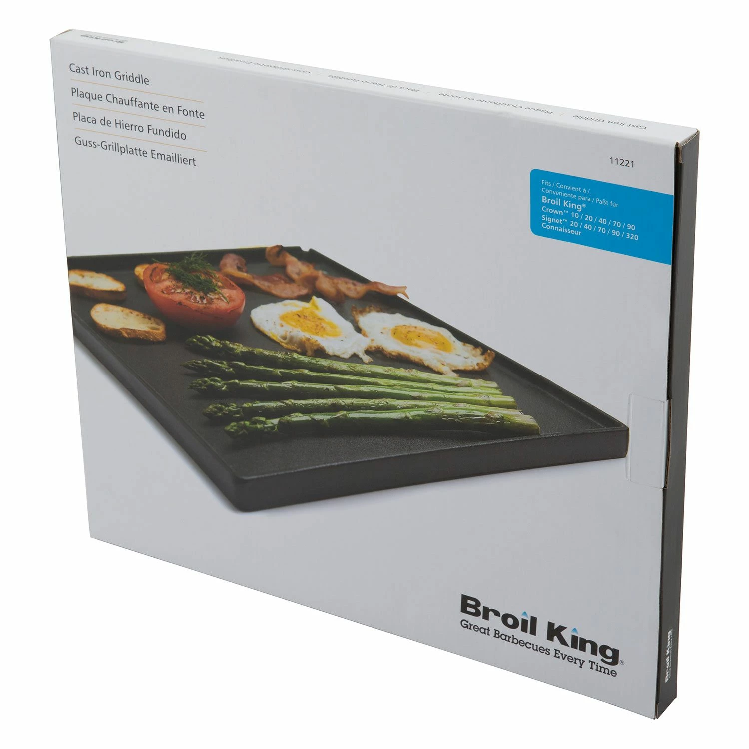 Broil King 11221 Cast Iron Griddle for Signet Grills offers a premium accessory to expand your barbecue’s capabilities. This reversible, heavy-duty cast iron griddle with matte porcelain coating has one smooth side for frying, while the other side is ribbed for searing. An exact fit construction allows for use in place of a section of the cooking grids on your Broil King barbecue. This griddle has been designed specifically for use with a Broil King Signet grill.