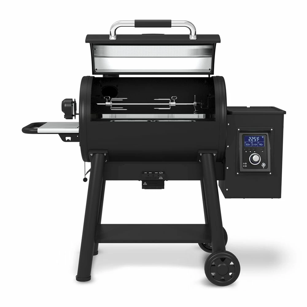 An integrated timer and stopwatch allow you to program your grill for perfect doneness, while two deluxe meat probes monitor the internal temperature of your food. Easily adjustable temperature control dials offer precision performance, while an extra large steel hopper holds up to 22 pounds of pellets. The Regal Series also features a stainless steel spit rod and forks with an electric motor for rotisserie-style grilling to expand your cooking potential. As an added benefit, this grill also features compatibility with the handy Broil King Pellet Grilling App to control what you’re cooking directly from your smartphone.