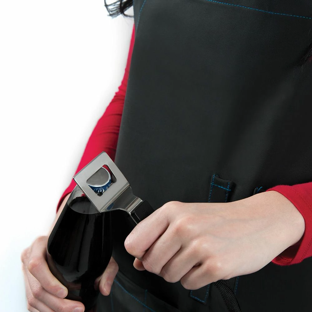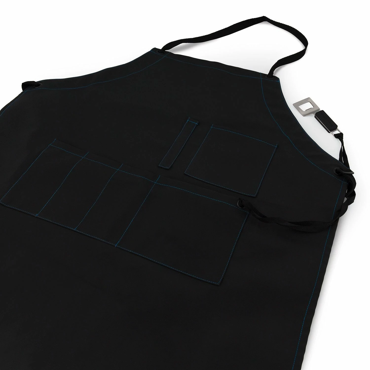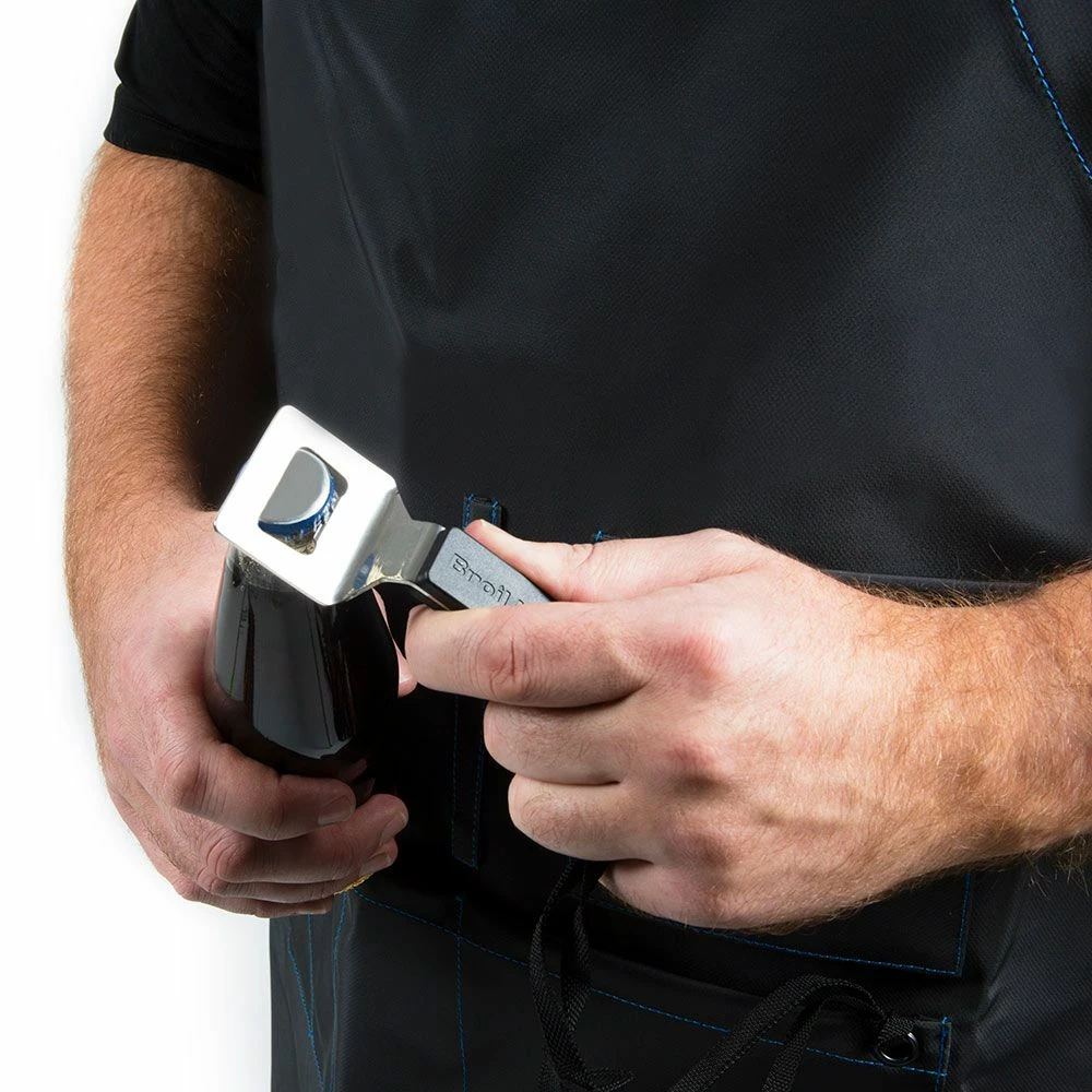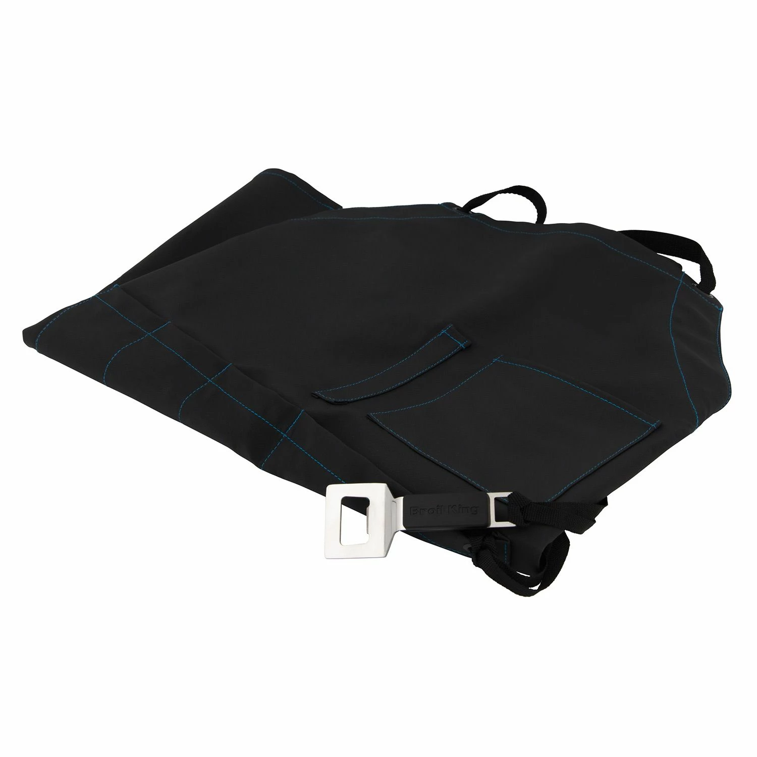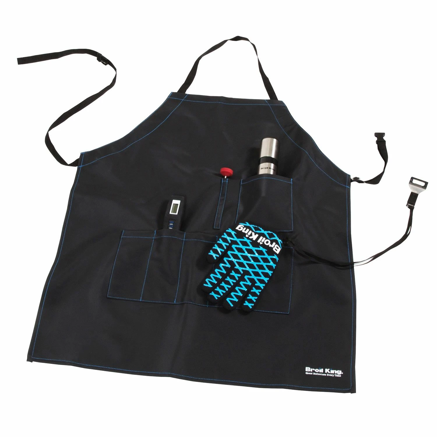 Broil King 60975 Grilling Apron offers a premium accessory for use with your grill. Crafted of the same water resistant material as Broil King Professional grill covers, this apron offers protection from grease and sauces and is easy to wipe clean. An integrated bottle opener, pockets for a thermometer, drink, and multiple utensils make this a one-of-a-kind grilling accessory. On top of all that an adjustable neck strap with buckle mechanism ensures all who step up to the grill can be accommodated.