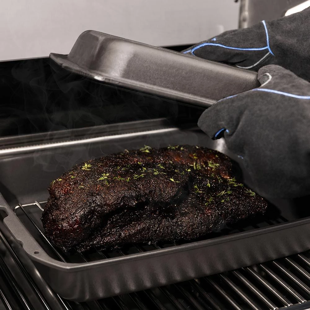 Broil King 69610 Cast Iron Multi Roaster offers a premium accessory to expand your barbecue’s capabilities. This versatile, heavy-duty cast iron roaster with matte porcelain coating features a smart rack to elevate food off the surface for even cooking of large cuts of meat.