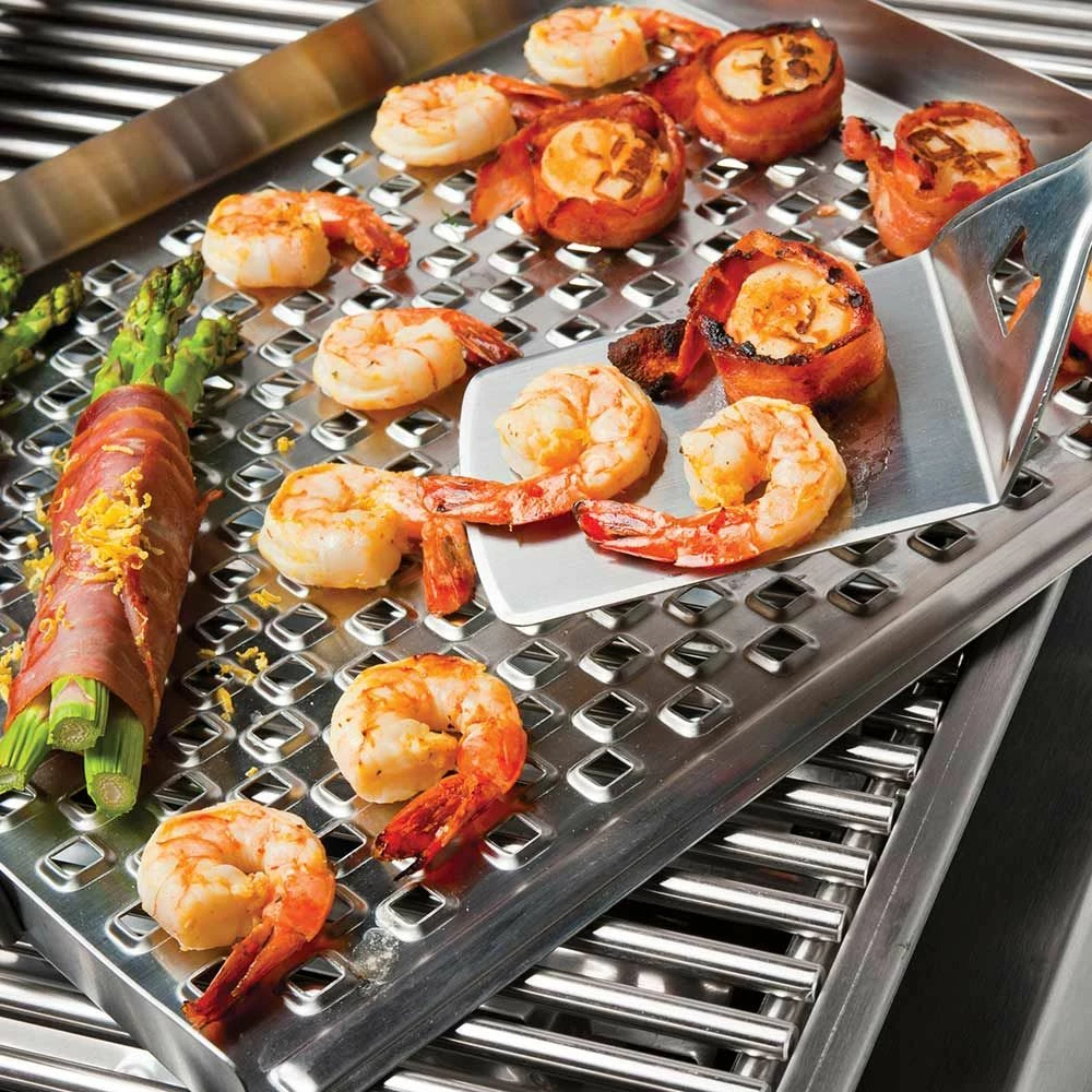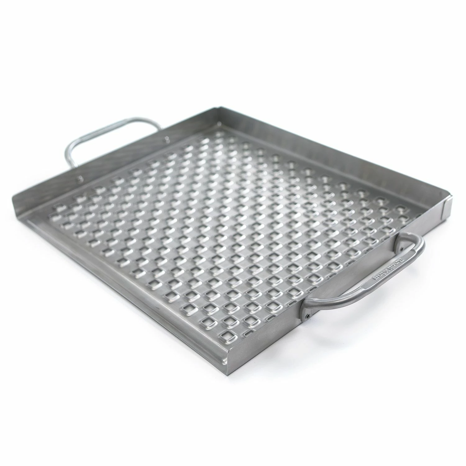 Broil King 69712 Flat Stainless Steel Imperial Grill Topper offers a premium accessory for use with your grill. The Broil King Imperial flat topper features high grade 1.2 mm stainless steel construction for premium durability. The spacious design gives you more cooking space, while a raised frame keeps foods contained within the topper cooking surface. Oversized 10mm stainless steel handles and square raised perforations add to the topper’s rigidity, while raised perforations help keep food from sticking.