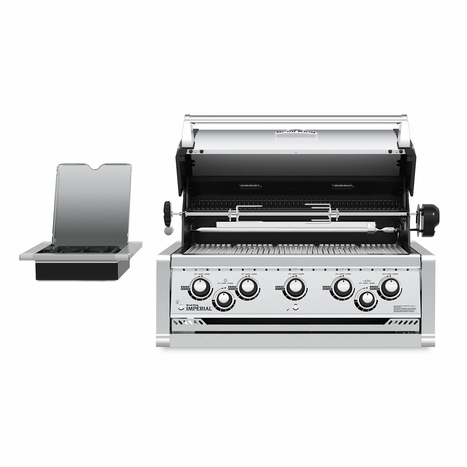Broil King IMP-590BI Imperial 590 5-Burner Built-In Grill with Side Burner, 32-Inches offers a premium grilling experience for your outdoor kitchen. This grill features die-cast aluminum and high-grade stainless steel construction for proven durability and excellent heat retention. Professional cast stainless steel cooking grids feature a pointed side for perfect steakhouse sear marks and a grooved side for continuous basting. The stainless steel Flav-R-Wave cooking system offers impressive heat distribution across the entire surface of the grill, while drippings that fall onto the Flav-R-Wave system are instantly vaporized. Five Dual-Tube burners feature high quality, heavy-duty stainless steel construction with a tube-in-tube, side-ported design for even heating. Linear-Flow valves with 180-degree Sensi-Touch control knobs offer smooth and simple heat control to precisely control the temperature of your grill.
