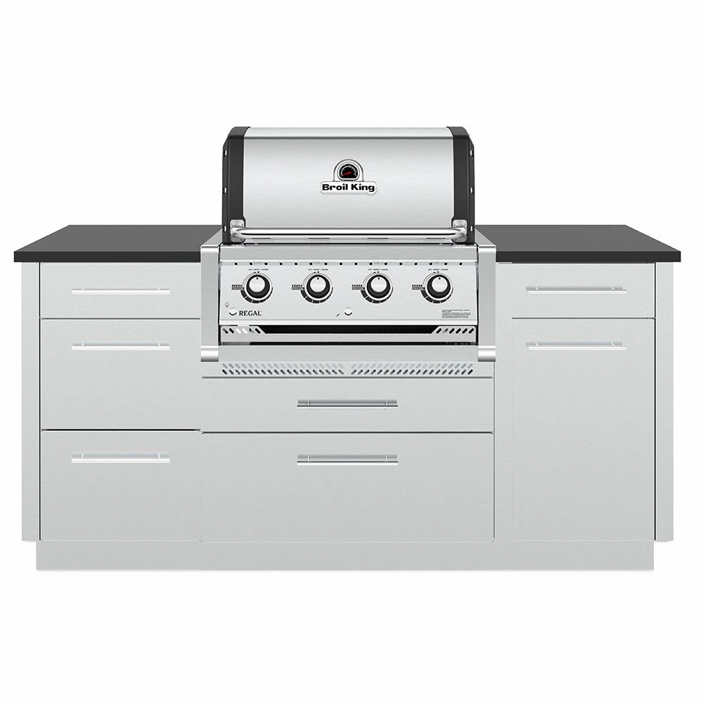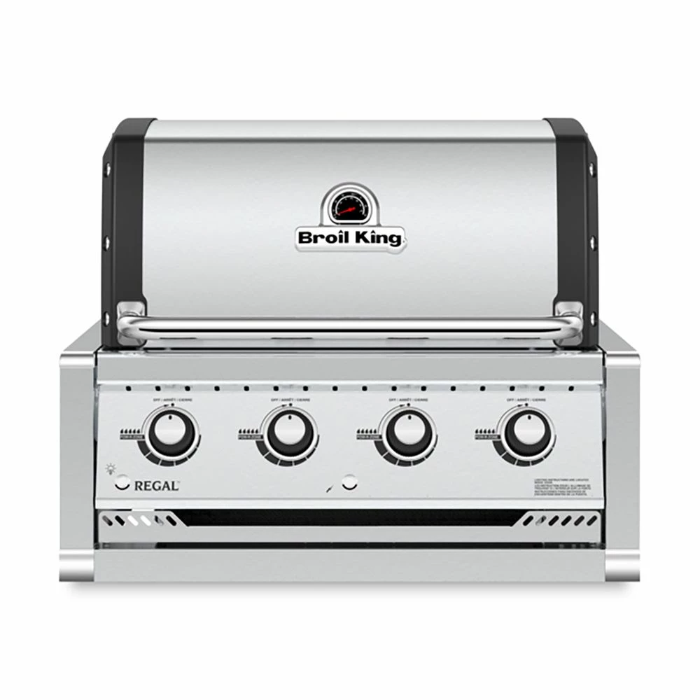 Broil King RG-S420 Regal S420 Stainless Steel 4-Burner Built-In Gas Grill Head offers a premium grilling experience for your outdoor kitchen. This grill features die-cast aluminum and high-grade stainless steel construction for proven durability and excellent heat retention. Heavy duty 9mm stainless steel cooking grids feature a pointed side for perfect steakhouse sear marks and a grooved side for continuous basting. The stainless steel Flav-R-Wave cooking system offers impressive heat distribution across the entire surface of the grill, while drippings that fall onto the Flav-R-Wave system are instantly vaporized. Four Dual-Tube burners feature high quality, heavy-duty stainless steel construction with a tube-in-tube, side-ported design for even heating. Linear-Flow valves with 180-degree Sensi-Touch control knobs offer smooth and simple heat control to precisely control the temperature of your grill.