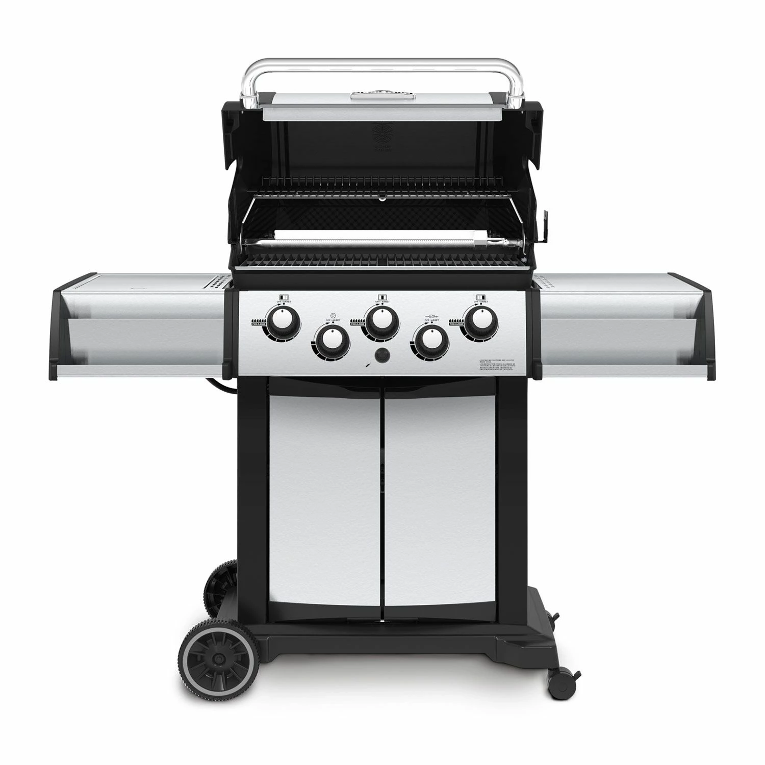 Broil King SIG-390 Signet 390 3-Burner Grill on 2-Wheel Cart with Side Burner, 25.5-Inches offers a premium grilling experience for your outdoor kitchen. This grill features die-cast aluminum and high-grade stainless steel construction for proven durability and excellent heat retention. Heavy-duty cast iron cooking grids feature a pointed side for perfect steakhouse sear marks and a grooved side for continuous basting. The stainless steel Flav-R-Wave cooking system offers impressive heat distribution across the entire surface of the grill, while drippings that fall onto the Flav-R-Wave system are instantly vaporized. Three Dual-Tube burners feature high quality, heavy-duty stainless steel construction with a tube-in-tube, side-ported design for even heating. Linear-Flow valves with 180-degree Sensi-Touch control knobs offer smooth and simple heat control to precisely control the temperature of your grill.