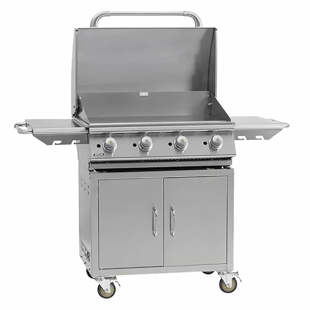 Bull BG-730xx Freestanding 30-Inch Commercial Griddle offers a high performance freestanding griddle that combines quality and affordability unlike most others. Bull’s 30-inch Commercial Style Griddle boasts 304 stainless steel construction with 4 heavy-duty stainless steel welded burners that give 60,000 BTUs of power for high-performance cooking. While the chromium plated griddle offers plenty of surface area to help create those relaxing outdoor breakfasts on beautiful sunny mornings, the durable control knobs offer easy heat control. The ultra-reliable piezo ignition on this grill offers the simplest of push-and-turn griddle startups. Do yourself a favor and reward yourself this grilling season with a superior cooking station from Bull BBQ.