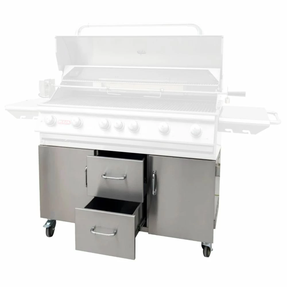Bull Grill Cart for Diablo Grill provides a versatile cart with doors that allow easy access to your propane tank or other grilling accessories you may want to store underneath your grill. It also provides adequate food preparation space utilizing stainless steel shelves on either side of the grill. This grill cart makes for the ultimate grilling station with its extra storage space and ability to be portable in your backyard or patio.
