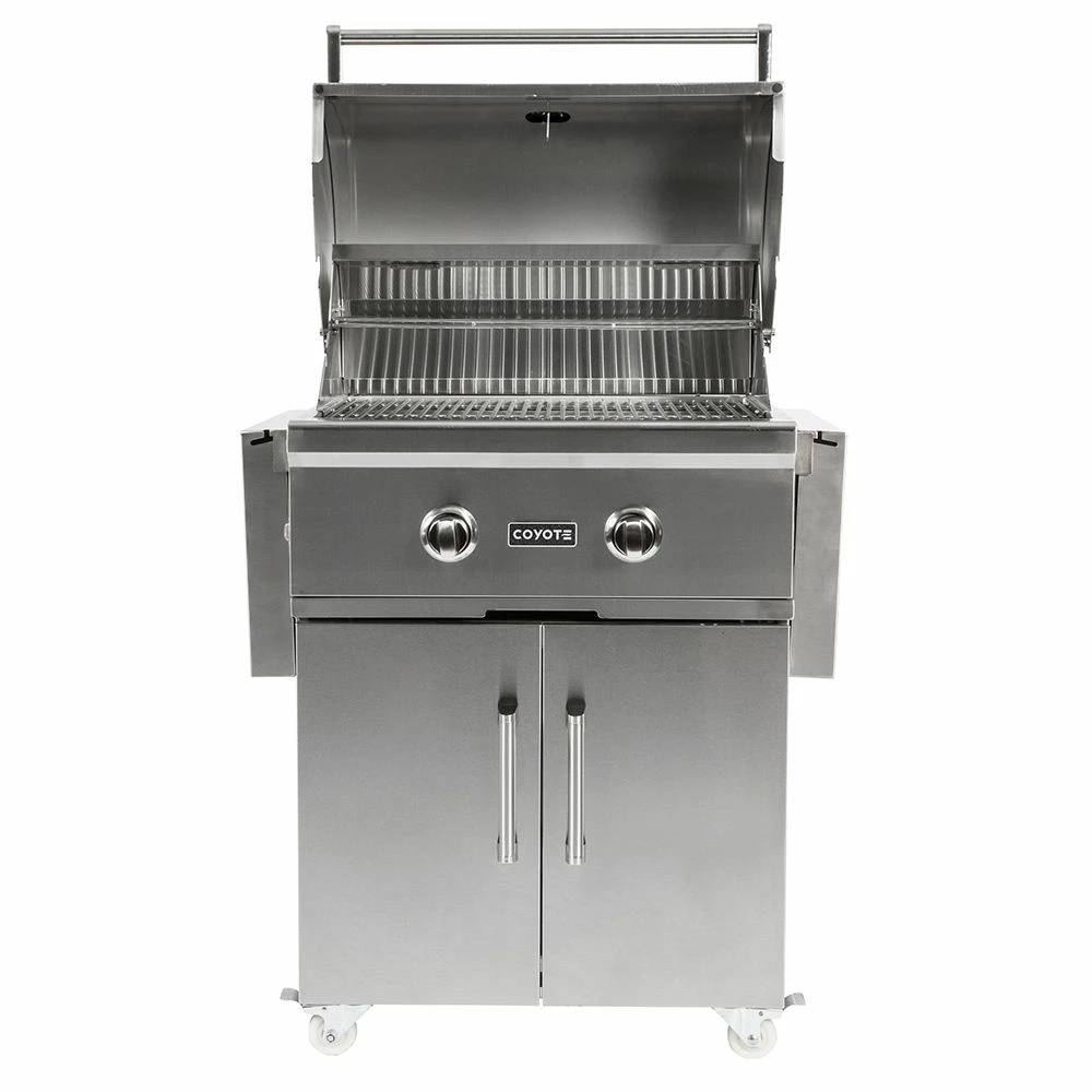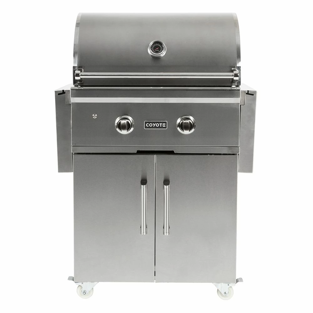 Coyote C-Series Stainless Steel Freestanding Gas Grill, 28-Inch (C1C28-CT) provides a premium grilling option for your outdoor kitchen. The Coyote C-Series grill has been manufactured for high performance with two Coyote Infinity Burners designed to put out 40,000 BTU of heat across 585 square inches of cooking space. Complete 304 stainless steel construction ensures heavy-duty durability, while interior grill lighting makes in easier to see the grill surface in low-light conditions. This base grill can also be upgraded with a variety of products and accessories custom built for this grill model (sold separately).