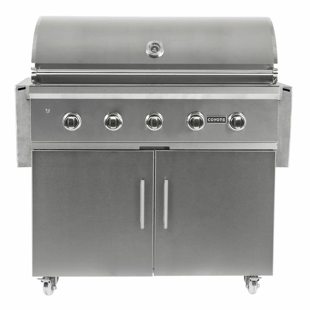 Coyote C-Series Stainless Steel Freestanding Gas Grill, 42-Inch (C2C42-CT) provides a premium grilling option for your outdoor kitchen. The Coyote C-Series grill has been manufactured for high performance with five Coyote Infinity Burners designed to put out 100,000 BTU of heat across 955 square inches of cooking space. Complete 304 stainless steel construction ensures heavy-duty durability, while interior grill lighting makes in easier to see the grill surface in low-light conditions. This base grill can also be upgraded with a variety of products and accessories custom built for this grill model (sold separately).