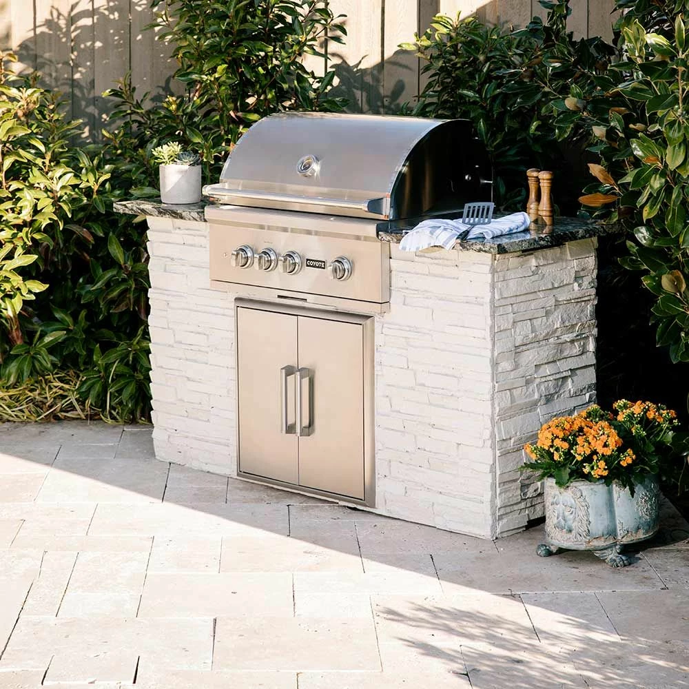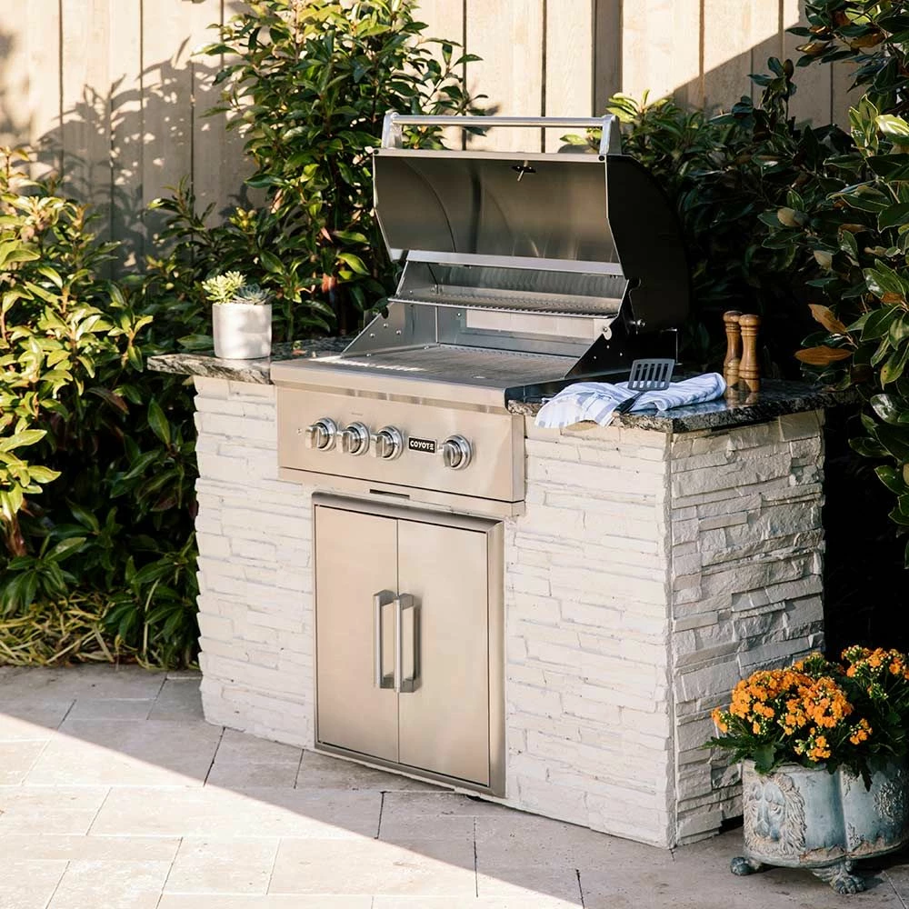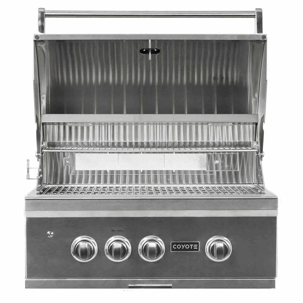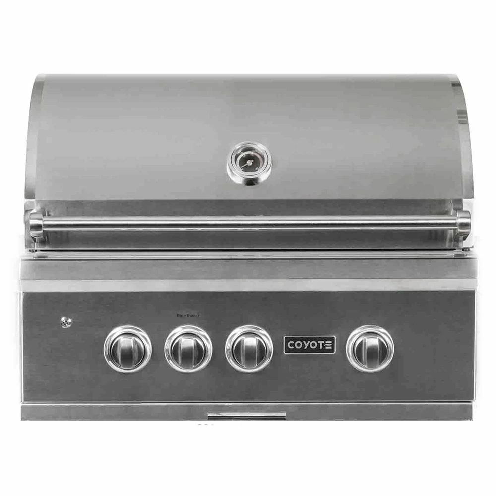 Coyote S-Series Stainless Steel Built-In Gas Grill with Infrared Sear Burner & Rotisserie, 30-Inch (C2SL30) provides a premium grilling option for your outdoor kitchen. The Coyote S-Series grill features complete 304 stainless steel construction and has been manufactured for high performance with two Coyote Infinity Burners, one Coyote RapidSear Burner and one infrared rear burner. Ceramic briquette heat control grids offer supreme radiant heating for better results across all 665 square inches of cooking space, while the included rotisserie kit and smoker box allow for expanded cooking options. Additional features include interior grill lighting for easier visibility in low-light conditions as well as LED illuminated control knobs. This base grill can also be upgraded with a variety of products and accessories custom built for this grill model (sold separately).