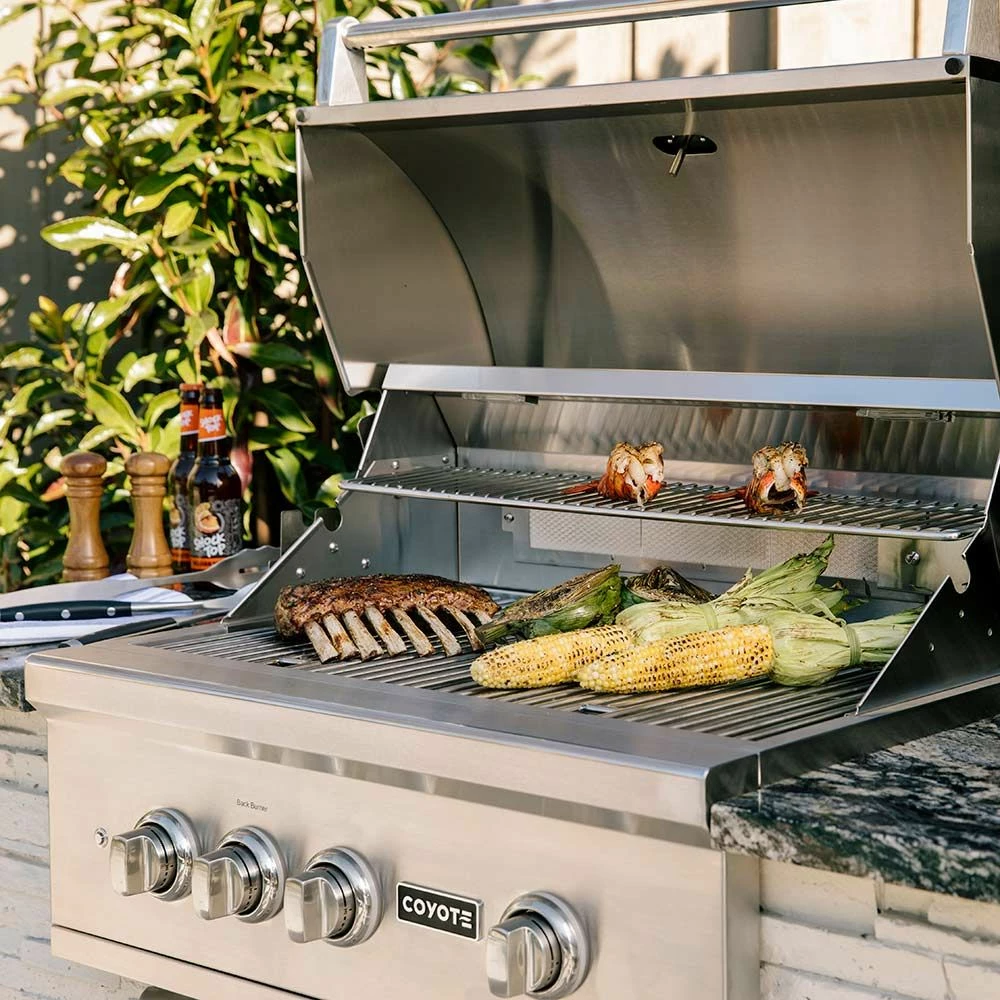 - This grill features two Coyote Infinity Burners, one Coyote RapidSear Burner and an infrared rear burner for ultimate cooking power.