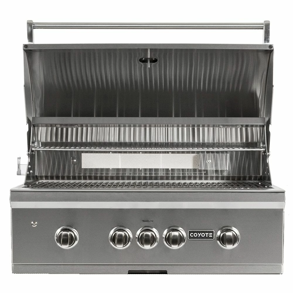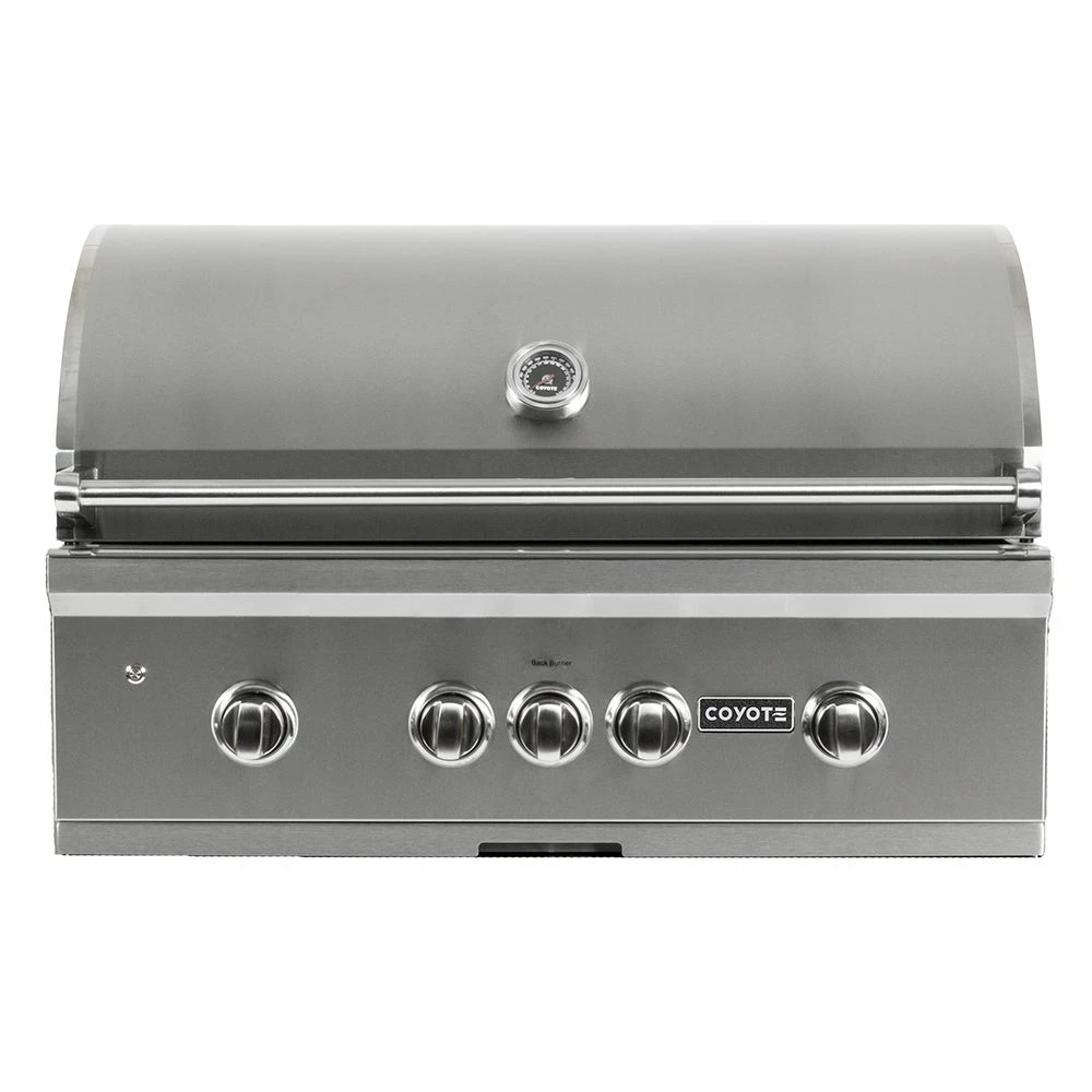 Coyote Stainless Steel Built-In Builder Gas Grill with Infrared Sear Burner and Rotisserie, 36-Inch (C1S36) provides a premium grilling option for your outdoor kitchen. The Coyote Builder grill features complete 304 stainless steel construction and has been manufactured for high performance with three Coyote I-Burners, one Coyote RapidSear Burner and one infrared rear burner. This grill offers premium heating across all 875 square inches of cooking space, while the included rotisserie kit and smoker box allow for expanded cooking options. Additional features include interior grill lighting for easier visibility in low-light conditions. This base grill can also be upgraded with a variety of products and accessories custom built for this grill model (sold separately).