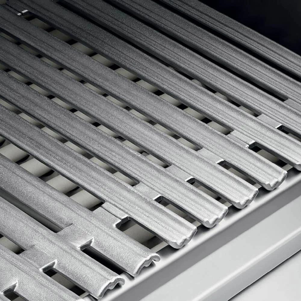 - Double Sided Cast Stainless Steel Grates – Constructed from 304 cast stainless steel, the double sided grates feature a gentle radius on one side for delicate foods and the other is W shaped for perfect sear lines