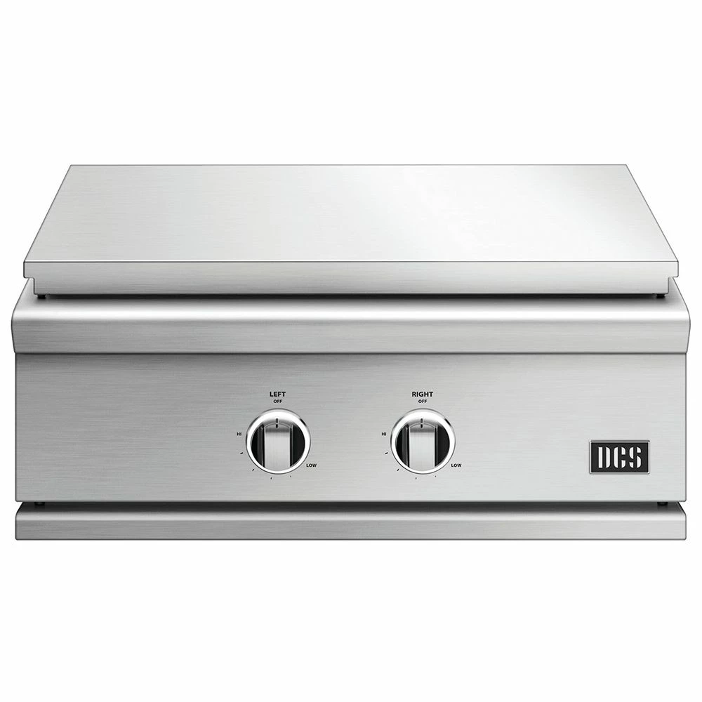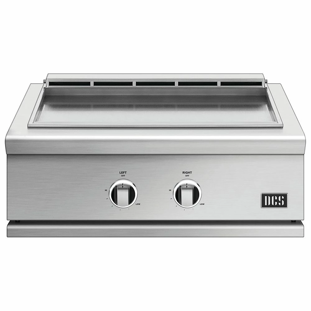 DCS GDE1-30 Series 9 30-Inch Built-In Griddle provides a high-end grill to help complete the ultimate outdoor kitchen. Featuring complete 304 stainless steel construction, this grill offers long-lasting durability for many years of premium grilling. This grill offers searing hear and precise control across 500 square inches of griddle space thanks to two 20,000 BTU U-burners. Separate temperature zones offer even heat distribution, while illuminated dials match the suite of DCS Series 9 products. A removable slide-out drip tray offers safe and convenient cleanup, while a flame failure device cuts gas flow in the event a burner is extinguished.