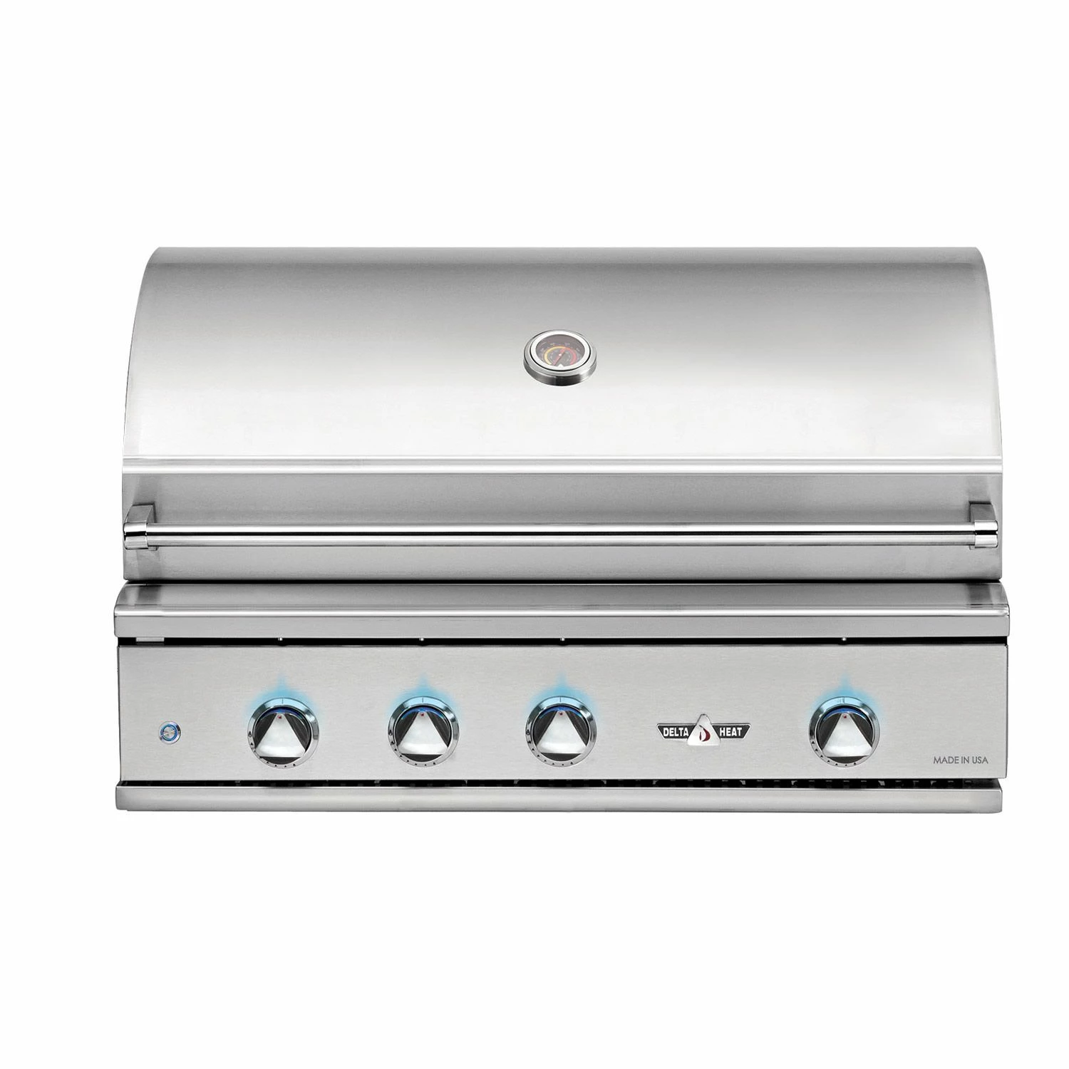 Delta Heat DHBQ38-D Built-In Gas Grill, 38-Inches provides an large sized grilling surface along with high-end performance. Featuring three 18-Gauge stainless steel burners and a 625-square-inch grilling space, this grill has been engineered to exceed all expectations. With optional add-ons, such as the Infrared Sear Zone and Infrared Rotisserie, this grill epitomizes what it means to be a high performance BBQ grill to fulfill the needs of any grill enthusiast. Additionally, new light switches and harnesses, an improved temperature gauge, and a heavier gauge rotisserie motor mount make the latest iteration of this grill even better than before.
