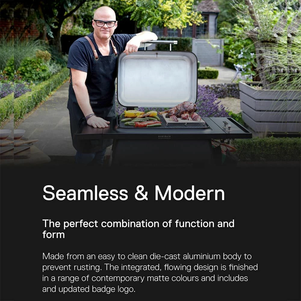 Everdure E2G3 Force Freestanding Gas Grill, 46.25-Inches provides a versatile freestanding gas grill that’s convenient and easy to use. The included stand features 2 lockable caster wheels for easy maneuvering, and the grill head can be taken off the stand with ease– even more versatility for this BBQ! The Force can be ready to cook in just minutes thanks to its fast ignition system and the engineered soft close hood ensures locked in flavor and quality cooking. Additionally, the die-cast aluminum body is coated with U-V rated gloss paint, allowing a contemporary look and easy clean up without sacrificing durability. This grill features a cooking area of 378 inches squared, and its high hood allows for multiple direct or indirect cooking methods. The versatility of the Everdure Force Freestanding Grill by Heston is sure to make your outdoor cooking experience effortless.