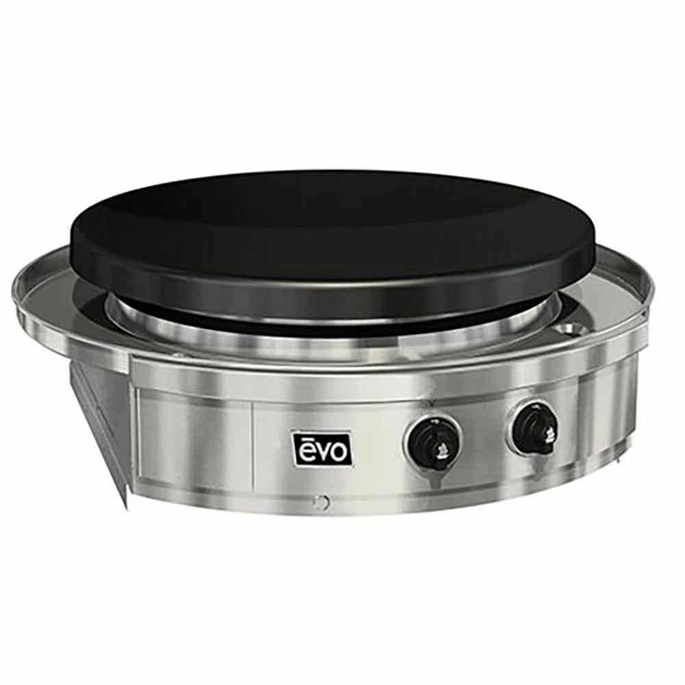 Evo 10-0075 Affinity 30Gp Series Indoor 30-Inch Built-In Flat Top Gas Grill provides a unique grilling machine designed for use in your indoor kitchen. Featuring heavy duty stainless steel construction, an oil-seasoned steel cooktop, and inner and outer tube burners, every inch of this grill expresses premium quality and manufacturing. With its distinctive design, this Evo grill allows foods to be prepared directly on the cooktop, and either separately or simultaneously, pots and pans may be used the same way as a more traditional cooking surface. The 30-inch diameter surface of this grill offers 706 square inches of cooking space and edge-to-edge even surface temperatures ranging from 225 degrees Fahrenheit to 525 degrees Fahrenheit to suit a wide variety of cooking styles.