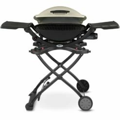 Weber Q2200 Portable Propane Gas Grill With Side Tables On Scissor Cart (WEB-54060001-WEB-6557)