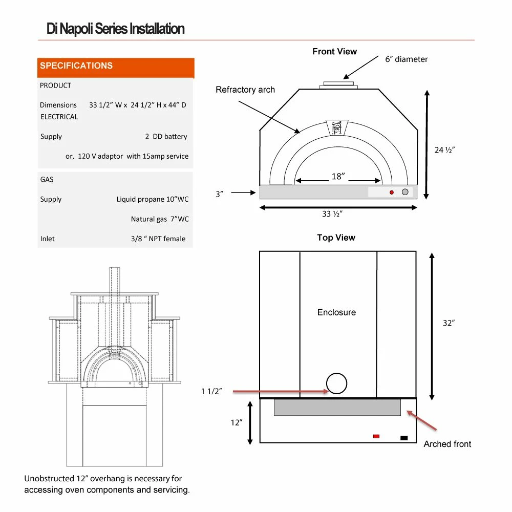 HPC Fire FDP-DINAPOLI/RTF-EI Di Napoli Dual Fuel Wood & Gas Built-In Pizza Oven with DIY Enclosure gives you the chance to cook delicious artisanal pizza in your own backyard in a high-quality, American-made package. Dual-fuel design lets you cook with gas or wood, adding smart versatility to the experience, and ready-to-finish construction is sure to add a homey, old-world touch to your outdoor living space. The smart electronic ignition system lets you get started quickly and easily, and the built-in enclosed design allows it to be installed in a custom-designed structure to suit your tastes. Through a combination of radiant, convection and conduction heating, you’ll achieve deliciously crisp crust and bubbly cheese every time, making your gatherings the talk of the town.