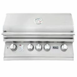 Lion L75000 32-Inch Built-In Grill provides a premium built-in gas grill for your outdoor kitchen. With commercial-grade, 16-gauge 304 stainless steel, this unit has been built to withstand many years of outdoor grilling. Four cast stainless steel burners offer 75,000 total BTU heat output for a high-end experience. These burners also feature a lifetime warranty for added insurance. An XL temperature gauge stands out in the double layer seamless welded smoker head for impressive aesthetics and performance, while five commercial push-to-turn knobs offer a quality feel on the control panel. Inside the grill, a 830-square-inch cooking surface provides ample room for food, while an adjustable warming rack and an infrared rotisserie cooking system diversify your grilling options.