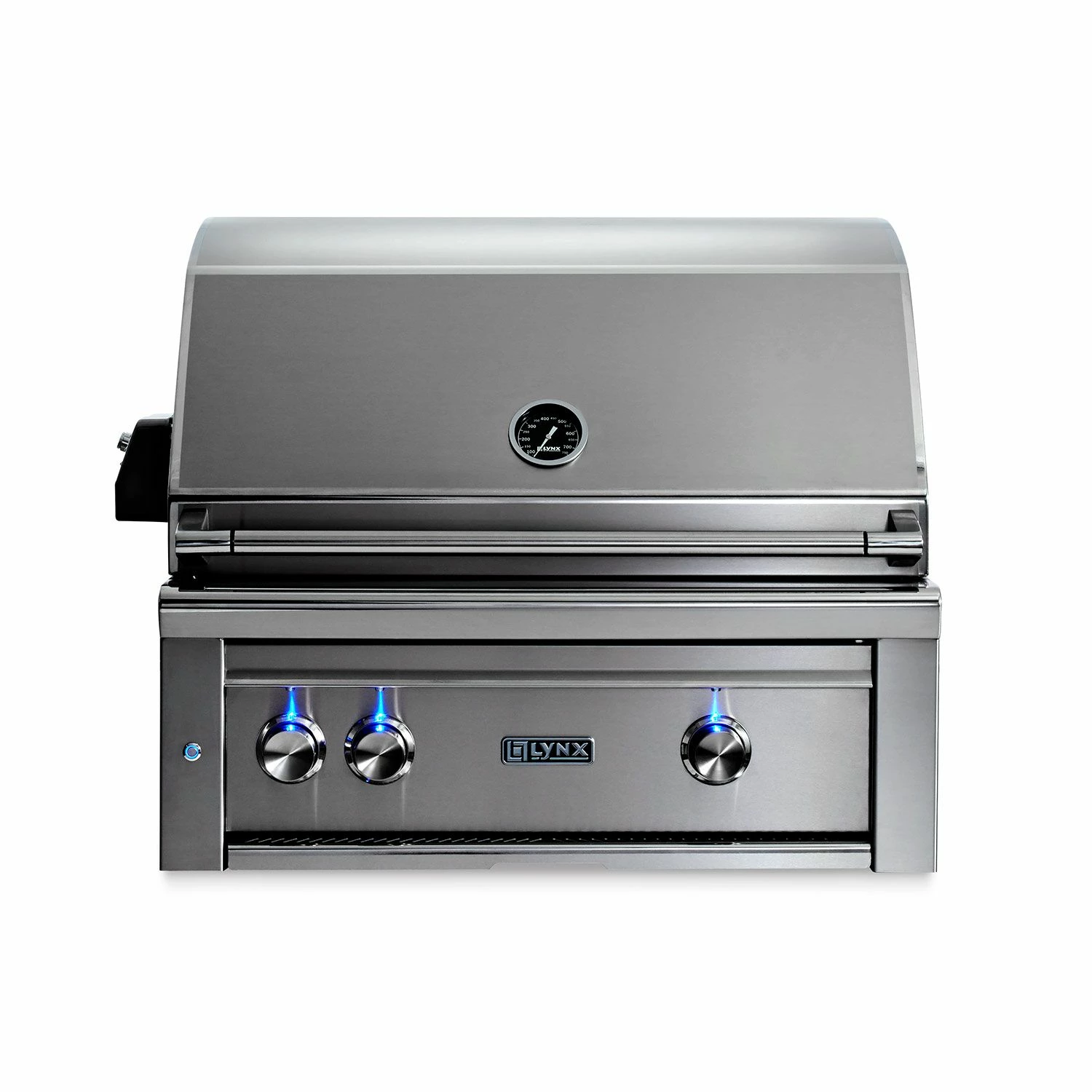Lynx L30BI Built-In Professional Gas Grill, 30-Inch combines innovative features, unparalleled performance, and superior craftsmanship to create one of the most advanced grills on the market. This BBQ grill features a heavy 16-gauge 304 stainless steel construction with smooth welded joints and polished mirrored edges for a blend of style and durability that will stand up to the elements in any climate. Designed for professional-style performance, the premium ceramic burners provide a whopping 25,000 BTU for extreme high heat output that’s evenly distributed while the ceramic radiant briquettes provide a charcoal-like infrared heat for an enhanced gas grilling experience. With LED backlit control knobs, internal halogen grill lights, a removable smoker box, rotisserie system with infrared rear burner, and a hot-surface ignition, this unit combines all of the requisite features of a high-end grill and then some – so you can create the best barbecue.