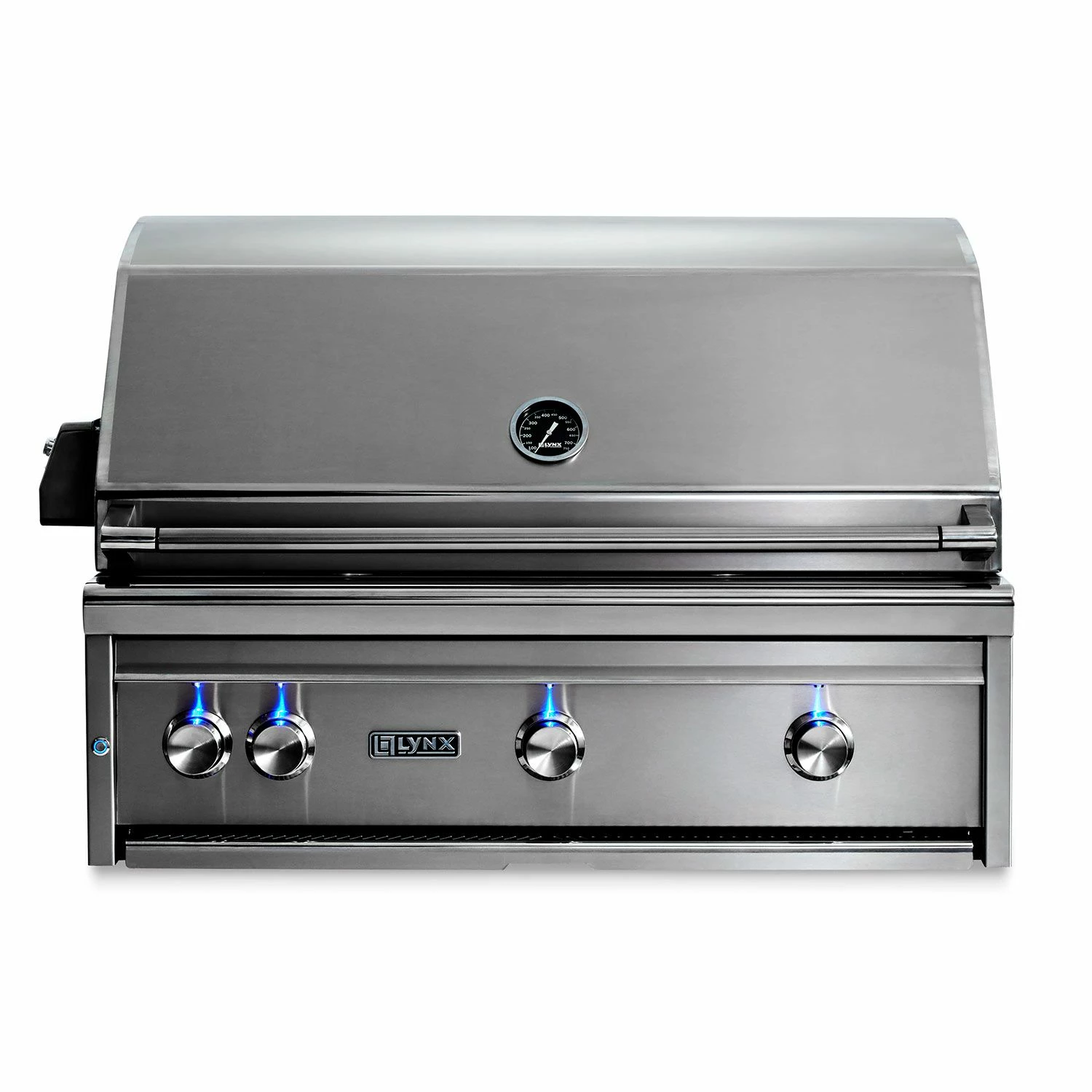 Lynx L36BI Built-In Professional Gas Grill, 36-Inch combines innovative features, unparalleled performance, and superior craftsmanship to create one of the most advanced grills on the market. This BBQ grill features a heavy 16-gauge 304 stainless steel construction with smooth welded joints and polished mirrored edges for a blend of style and durability that will stand up to the elements in any climate. Designed for professional-style performance, the premium ceramic burners provide a whopping 25,000 BTU for extreme high heat output that’s evenly distributed while the ceramic radiant briquettes provide a charcoal-like infrared heat for an enhanced gas grilling experience. With LED backlit control knobs, internal halogen grill lights, a removable smoker box, rotisserie system with infrared rear burner, and a hot-surface ignition, this unit combines all of the requisite features of a high-end grill and then some – so you can create the best barbecue.