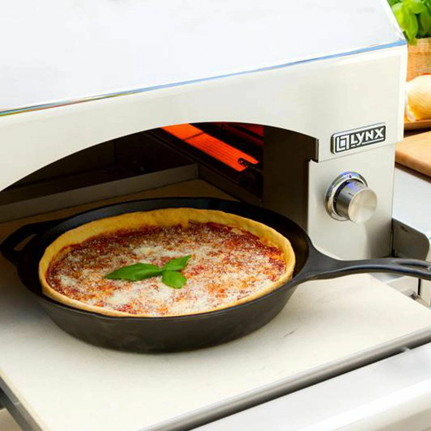 Lynx LPZA 30-Inch Built-In/Countertop Pizza Oven combines innovative features, unparalleled performance, and superior craftsmanship to create one of the most advanced pizza ovens on the market. This outdoor gas oven features a heavy 16-gauge 304 stainless steel construction with smooth welded joints and polished mirrored edges for a blend of style and durability that will stand up to the elements in any climate. Designed for professional-style performance, (2) variable infrared burners provide a whopping 20,000 BTU for extreme high heat output that’s evenly distributed throughout the ceramic lined interior. With LED backlit control knobs, internal halogen grill lights, and a hot-surface ignition this unit combines all of the requisite features of a high-end pizza oven and then some.