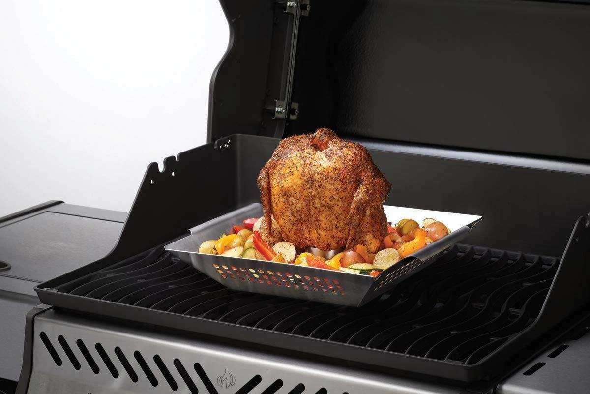 Napoleon 56024 Stainless Steel Chicken Roaster & Wok provides a high quality barbecue tool to help complete the ultimate grill setup. The 2-in-1 roasting rack features a premium stainless steel construction that’s designed to roast chicken while also allowing it to be used like a wok. The removable roasting cup and flavoring cone allow you to add special flavors and spices while roasting.