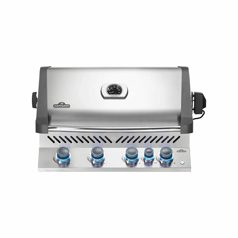 Napoleon BIP500RBSS-3 Prestige 500 Built-In Gas Grill with Rotisserie delivers high end performance without the price tag of a high end grill. The solid 304 stainless steel construction is designed for long term durability and ensures the grill will hold up to the elements. The (4) main grilling burners are rated for a 12,000 BTU maximum and feature a solid 304 stainless steel tube construction while the stainless steel sear plates help protect the burners and provide even heat distribution, preventing hot and cold spots across the 500in² grill surface. Added for 2019, the Night Light Safety Glow control knobs make it easy to know which burners are lit, allowing you to achieve better searing and indirect cooking performance.