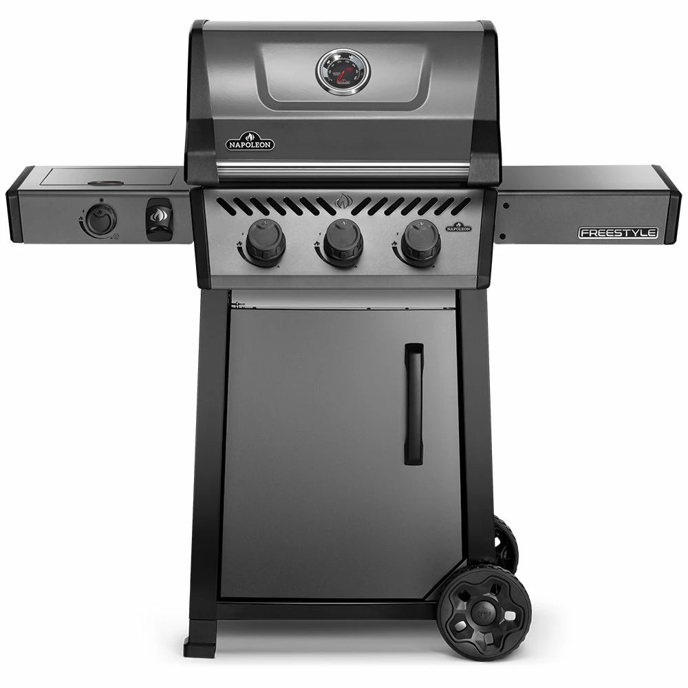 Napoleon F365DSBPGT-ECP Freestyle 365 Gas Grill on Cart with Side Range Burner, Propane serves up a high-quality grill that combines innovative tech with modern convenience features for a top-notch cooking experience. Napoleon’s signature JETFIRE ignition ensures an easy and reliable start up every time, and the iconic Wave cooking grids built from porcelain-coated cast iron provide the kind of sear marks every grillmaster loves to see. The side range burner offers a perfect platform for cooking up sides and sauces right on your grill for an all-in-one backyard hub.