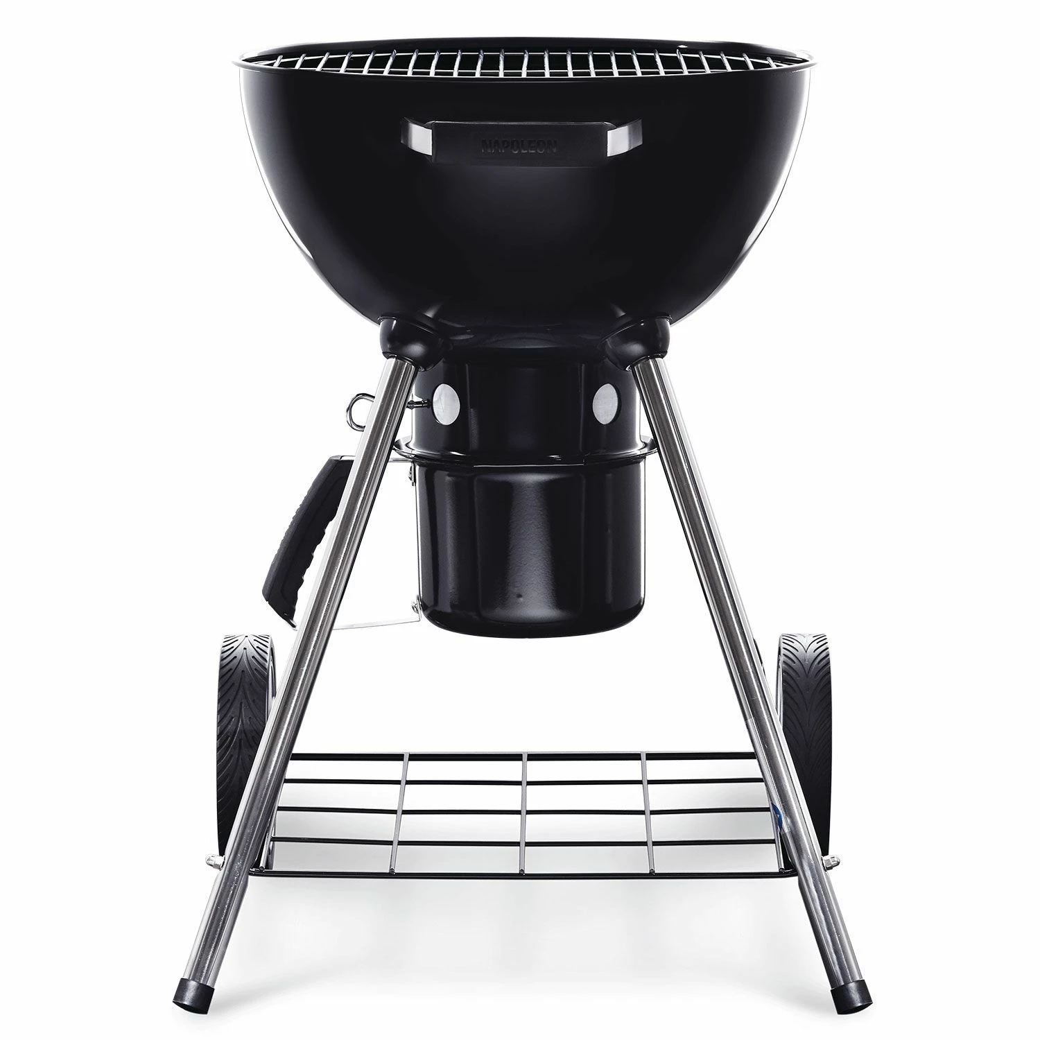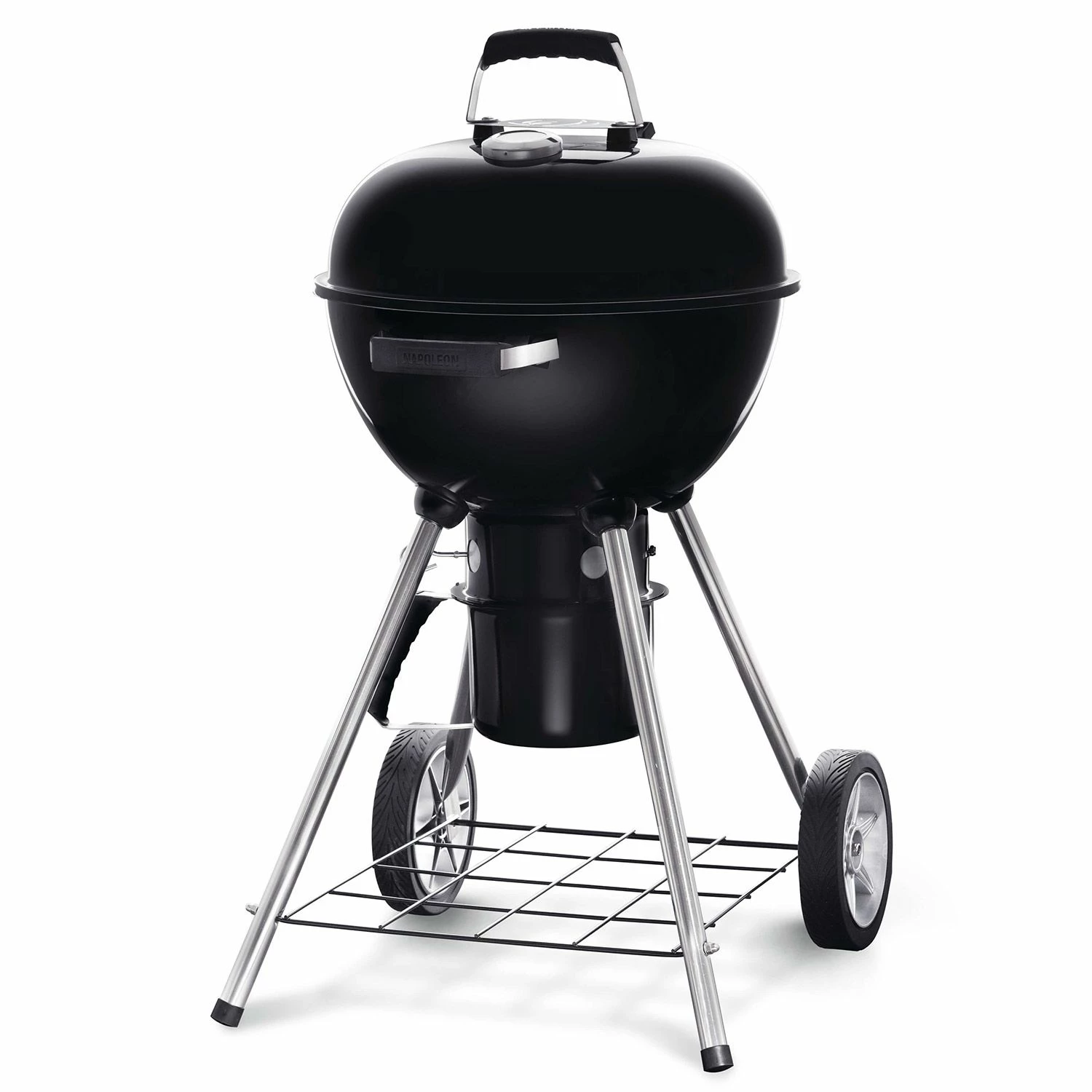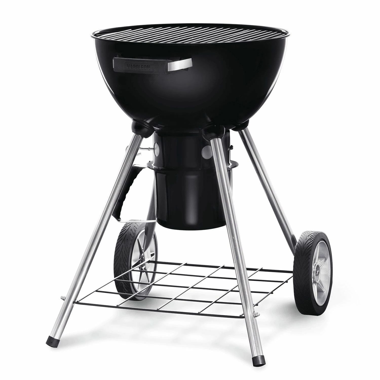 Napoleon NK18K-LEG-1 18-Inch Charcoal Kettle Leg Grill provides a traditional charcoal grill with an ultra convenient design. This 18-inch diameter kettle provides approximately 235 square inches of grilling surface. The powder coated aluminum cart is light and durable, allowing you to take this charcoal grill wherever it needs to go, while the chrome-plated steel cooking grids offer rust resistance and low maintenance. Dual stainless steel air vents allow controlled airflow for more precise charcoal smoking and grilling, while an integrated Accu-Probe temperature gauge accurately tracks grill temperature. A removable heavy steel ash catcher resists corrosion and offers easy cleaning, while a cool touch handle shields your hands from heat when lifting and handling the grill’s lid.