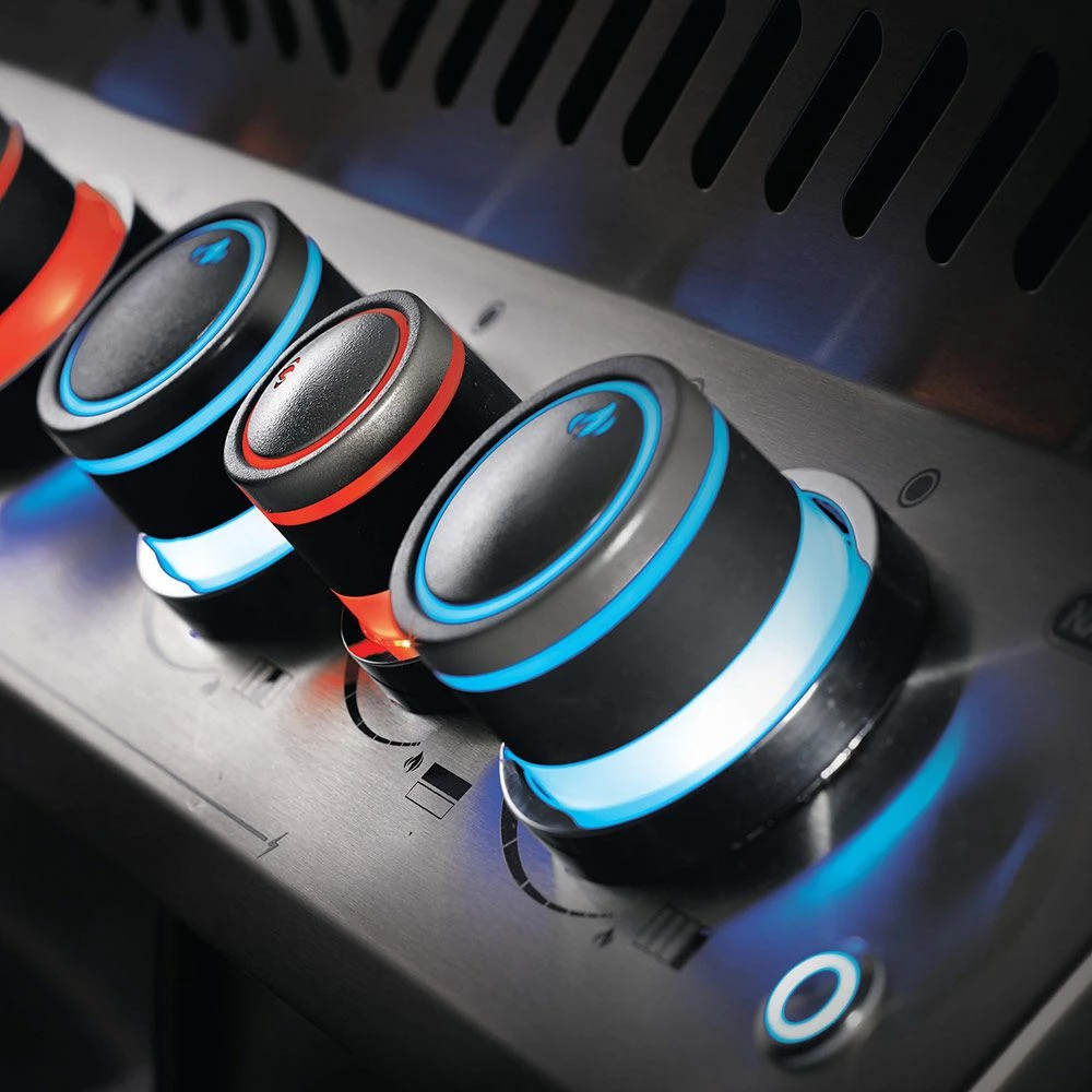 - SafetyGlow Back-Lit Knobs Standard Prestige models now feature Napoleon’s signature SafetyGlow lighting to indicate which burners are in use, creating a safer grilling experience