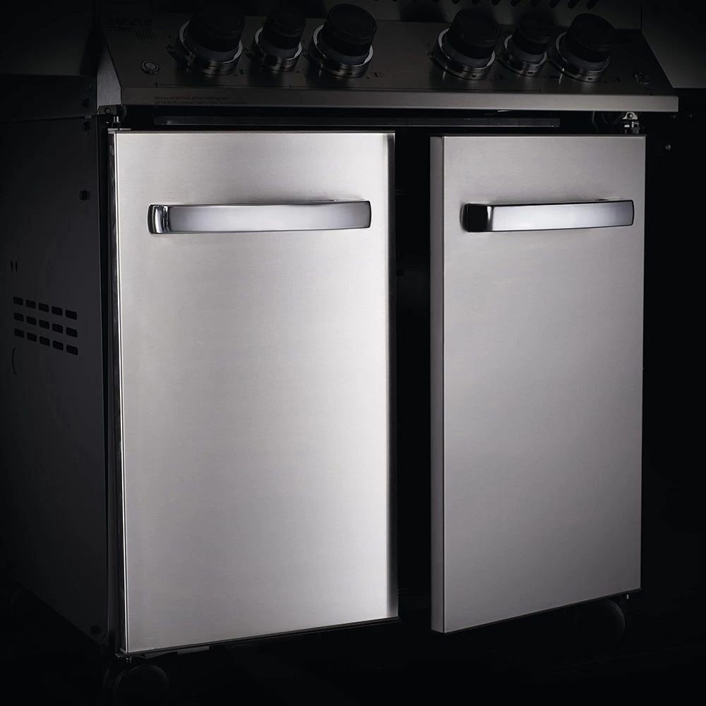 The patented “S” style wave grill grates are a signature of Napoleon grills and feature 7.5mm thick 304 stainless steel construction to provide long lasting durability and allow professional style grill marks. The unique Flame Throwing ignition provides a simple and reliable experience by shooting a flame to the burners, making start-up a breeze. The infrared back burner is rated for 18,000 BTU to allow professional style rotisserie cooking with the heavy duty rotisserie kit, and the infrared “Sizzle Zone” is rated for 14,000 BTU and can reach up to 1,800 degrees F to achieve steakhouse quality searing. The stainless steel side shelves feature integrated tool hooks for convenience and the (4) heavy duty casters allow easy mobility and lock to stay in place. Grillers will enjoy the Safety Glow LED back-lit control knobs that turn from blue to red while the burners are in use to make for a safe grilling experience.