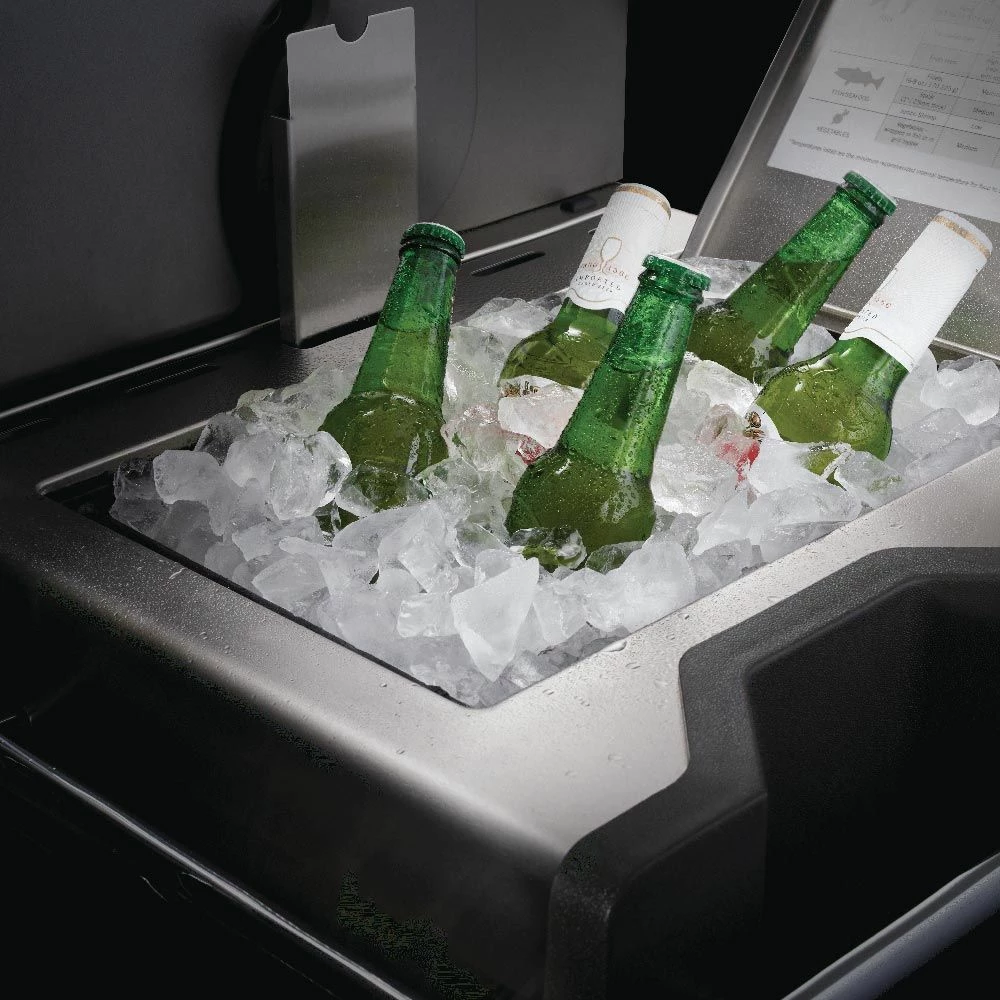 - Integrated Ice/Marinade Bucket Premium stainless steel side shelf with an integrated ice/marinade bucket, complete with cutting board adds unique versatility and integrated tool hooks for added convenience