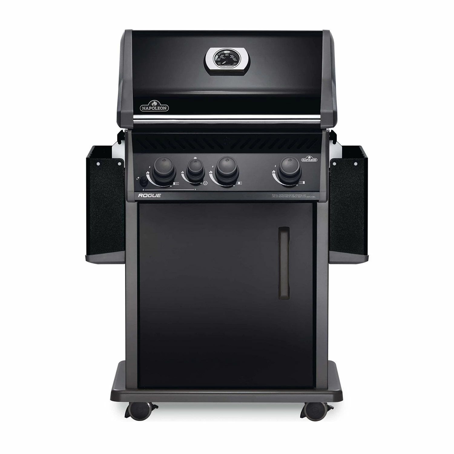 Napoleon RXT425SIBK Rogue XT 425 Black Gas Grill on Cart with Infrared Side Burner, 23.75-Inches offers an impressive grilling package in an attractive design. Featuring durable stainless steel construction, the Napoleon Rogue XT will be a mainstay at your backyard barbecues for many years to come. Featuring three main burners and a high top lid, this grill offers dynamic cooking potential as well as a convenient design. An integrated sear station helps create restaurant-style results, while generous side shelf space ensures you’ll always have plenty of room to add finishing touches when prepping your meals. This grill also features an attractive black design to set it apart from the crowd.