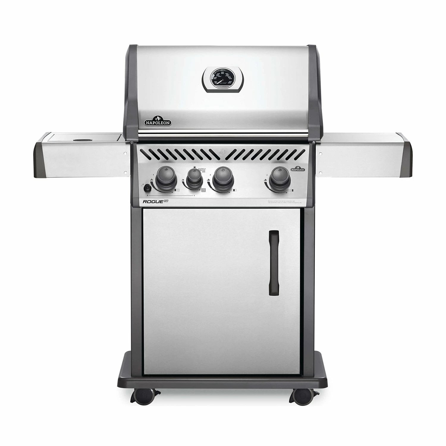 Napoleon RXT425SIBSS Rogue XT 425 Gas Grill on Cart with Infrared Side Burner, 23.75-Inches offers an impressive grilling package in an attractive design. Featuring durable stainless steel construction, the Napoleon Rogue XT will be a mainstay at your backyard barbecues for many years to come. Featuring three main burners and a high top lid, this grill offers dynamic cooking potential as well as a convenient design. An integrated sear station helps create restaurant-style results, while generous side shelf space ensures you’ll always have plenty of room to add finishing touches when prepping your meals.