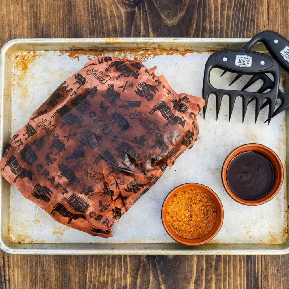 Oklahoma Joe’s OKJ-7844466P04 18-Inch Peach Butcher Paper, 100-Foot Roll provides a new way to create unique recipes on your grill. With its breathable, heat-resistant design, this butcher paper allows steam to escape while creating delicious bark on your meats. The unwaxed, uncoated and unbleached design ensures food safety and is FDA-approved. This roll measures 18 inches wide and 100 feet long with a resealable tube for easy storage.