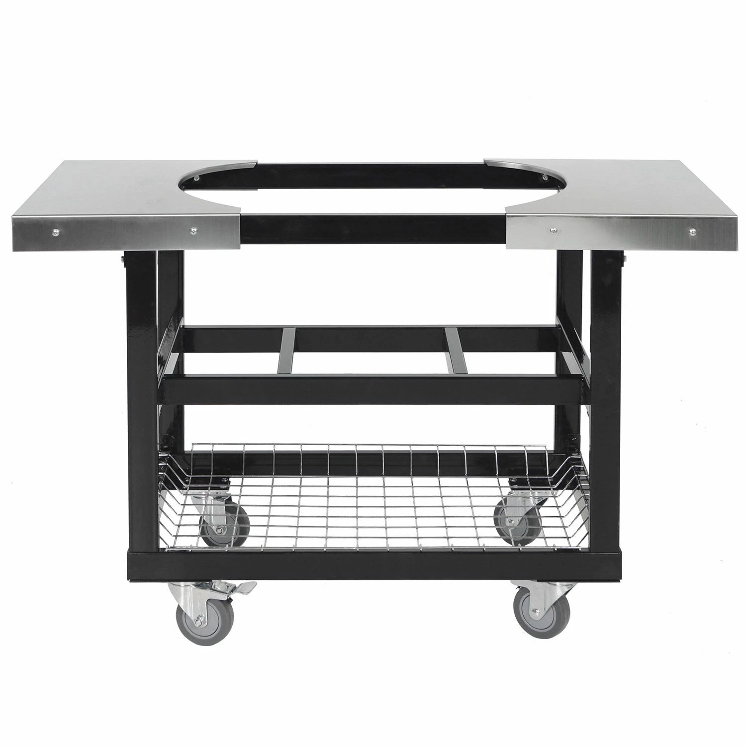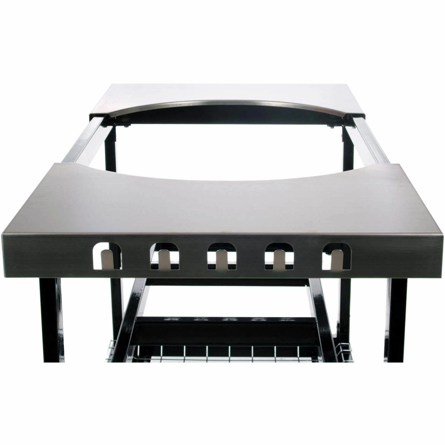 Primo Cart with Stainless Steel Side Shelves for Oval LG 300 & Oval XL 400 is a perfect option to secure and showcase your Primo grill–and great for saving space too. The heavy duty stainless steel construction features a powdered coated frame for long lasting durability, and the grill basket adds extra storage for charcoal and tools. The high quality casters allow effortless movement and lock to stay in place. The additional stainless steel side shelves and turn your cart into a fully functional grill island – great for your outdoor BBQs.