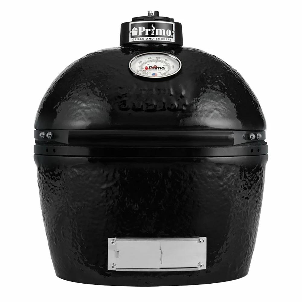 Primo CJRH Junior Oval Ceramic Charcoal Kamado Grill Head is one of the most innovative kamado-style grills on the market, made entirely in the U.S. from domestic materials. The Oval JR features an economic 210in² cooking area and with the optional racking system you can get up to 360in²–plenty of room for BBQ. Plus, the unique oval shape patented to Primo allows for dual zone cooking. Add the fire box divider to your purchase to make your Primo grill even more versatile. Enjoy the natural, smoky flavor of a charcoal grill and benefit from the versatility and quality that the premium grade ceramics of the Primo line has to offer.
