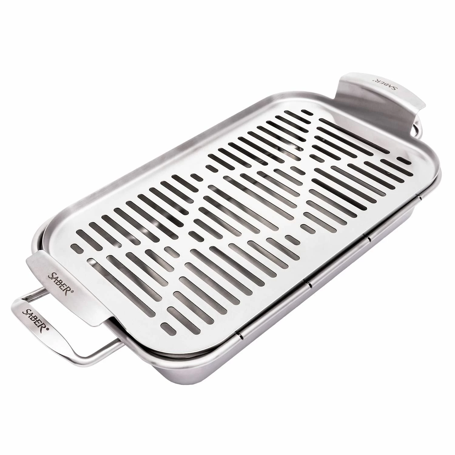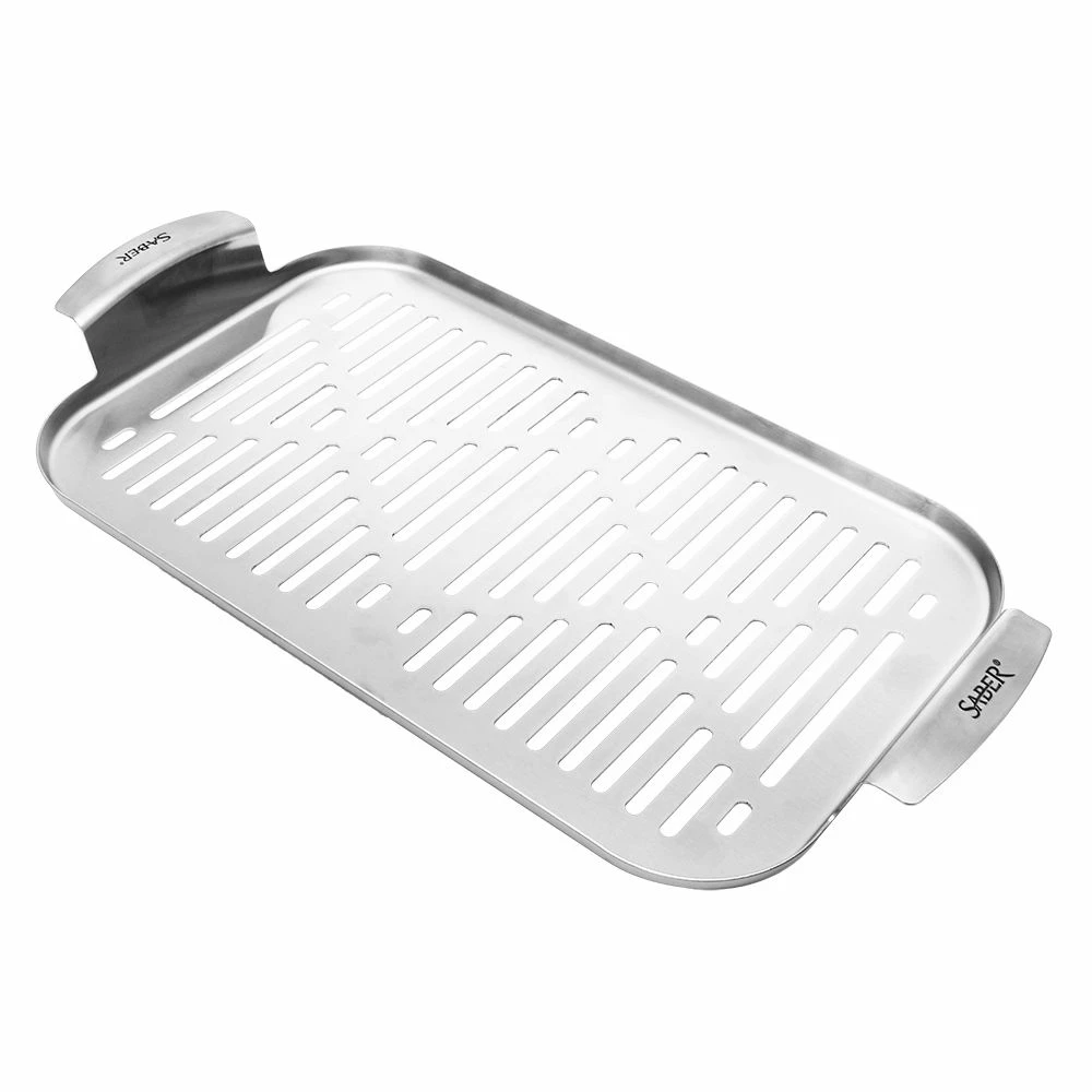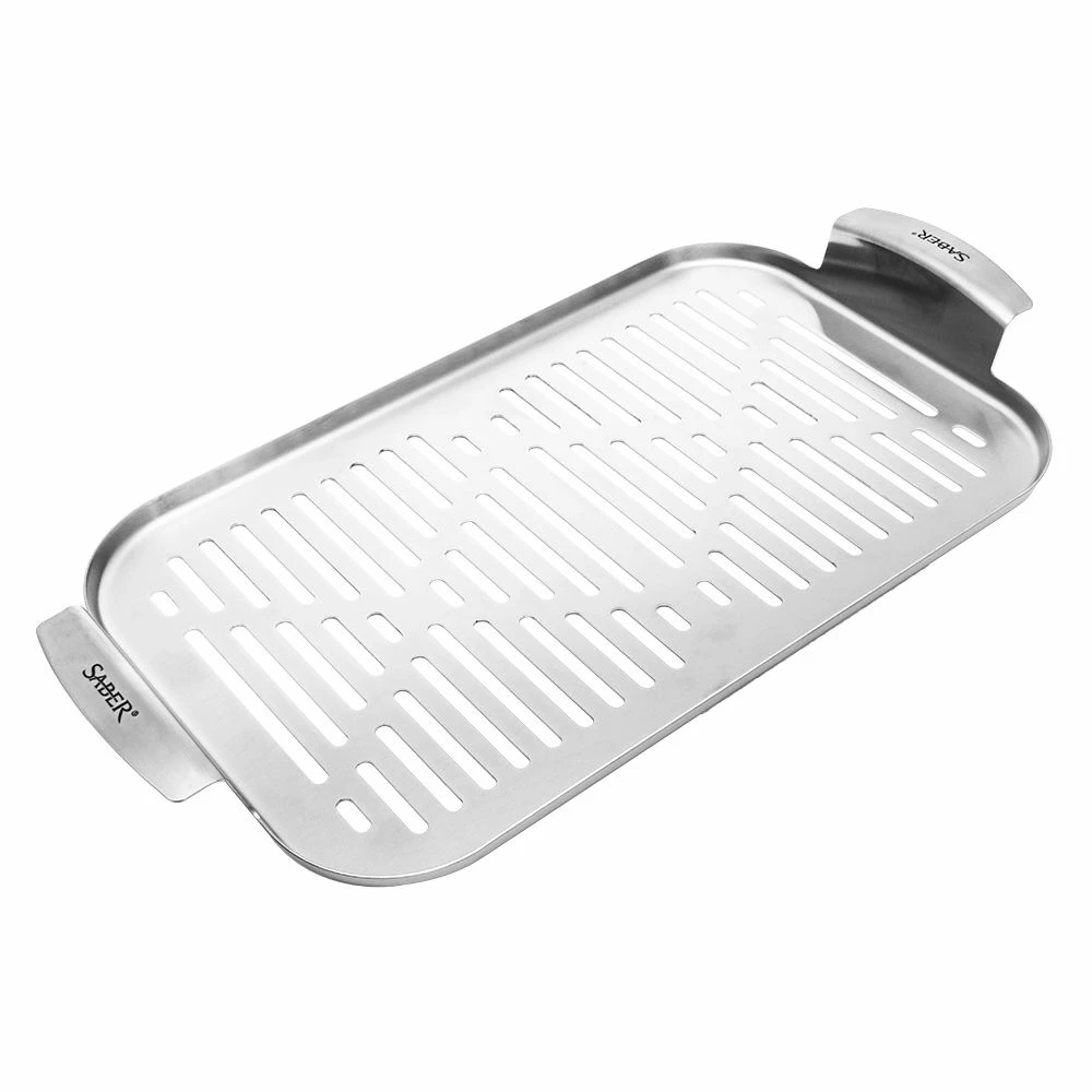 Saber A00AA7118 Stainless Steel Steamer Tray provides a premium accessory for use with your grill. This steamer tray allows for easy grilling of small or delicate foods on your grill surface. This tray features small slots to allow food juices to drip through while remaining small enough to keep food from falling through. Combine this steamer with the roasting pan (sold separately) to steam fish or add flavored wood chips to your grill for more dynamic cooking options.
