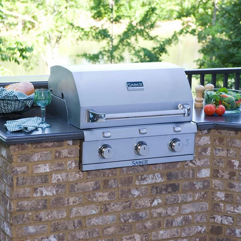 Saber R50SB0417 3-Burner Premium Built-In Infrared Grill, 32-Inches provides a premium addition to your outdoor kitchen. This grill brings restaurant quality results to your home with its patented Saber Cooking System. This innovative burner design heats evenly, eliminates flare-ups, and uses up to 30 percent less gas than comparable burners. This grill also offers a wider temperature range than traditional grills–from high temperature searing to low and slow roasting and everything in between. The Saber infrared can also pre-heat to searing temperatures in only 12 minutes to reduce the time it takes to get your food from grill to plate. When you’re finished grilling, the easy-to-clean design of the Saber grill allows food drippings to be burned off and brushed away with ease to save you even more time.