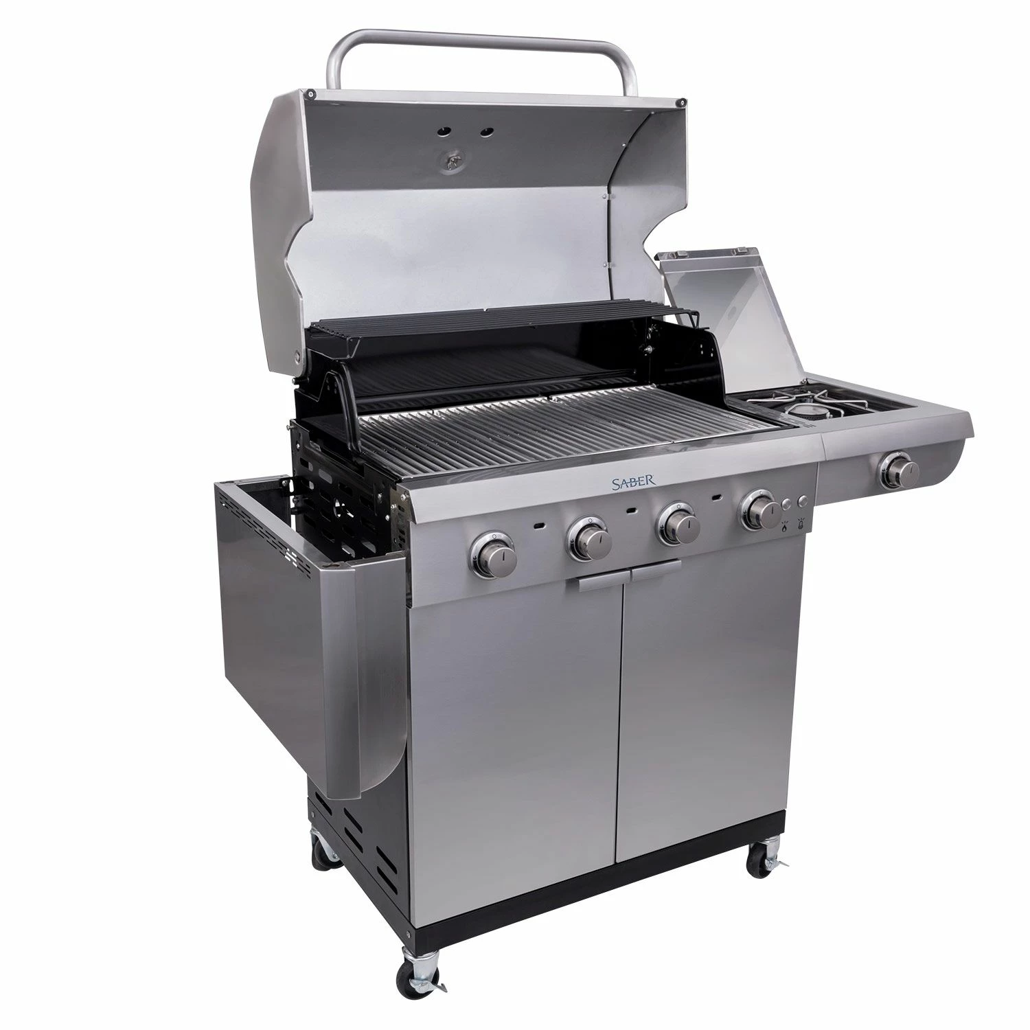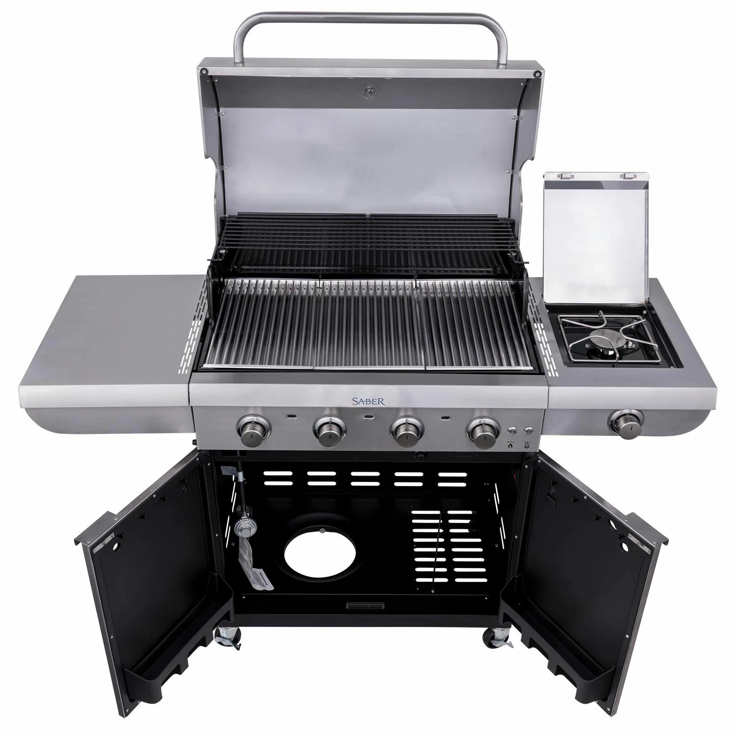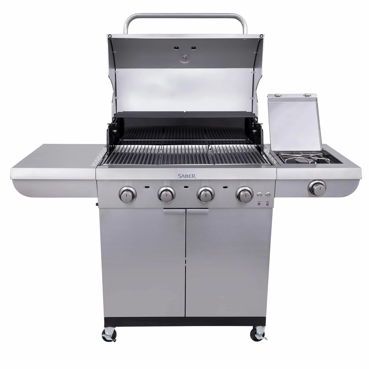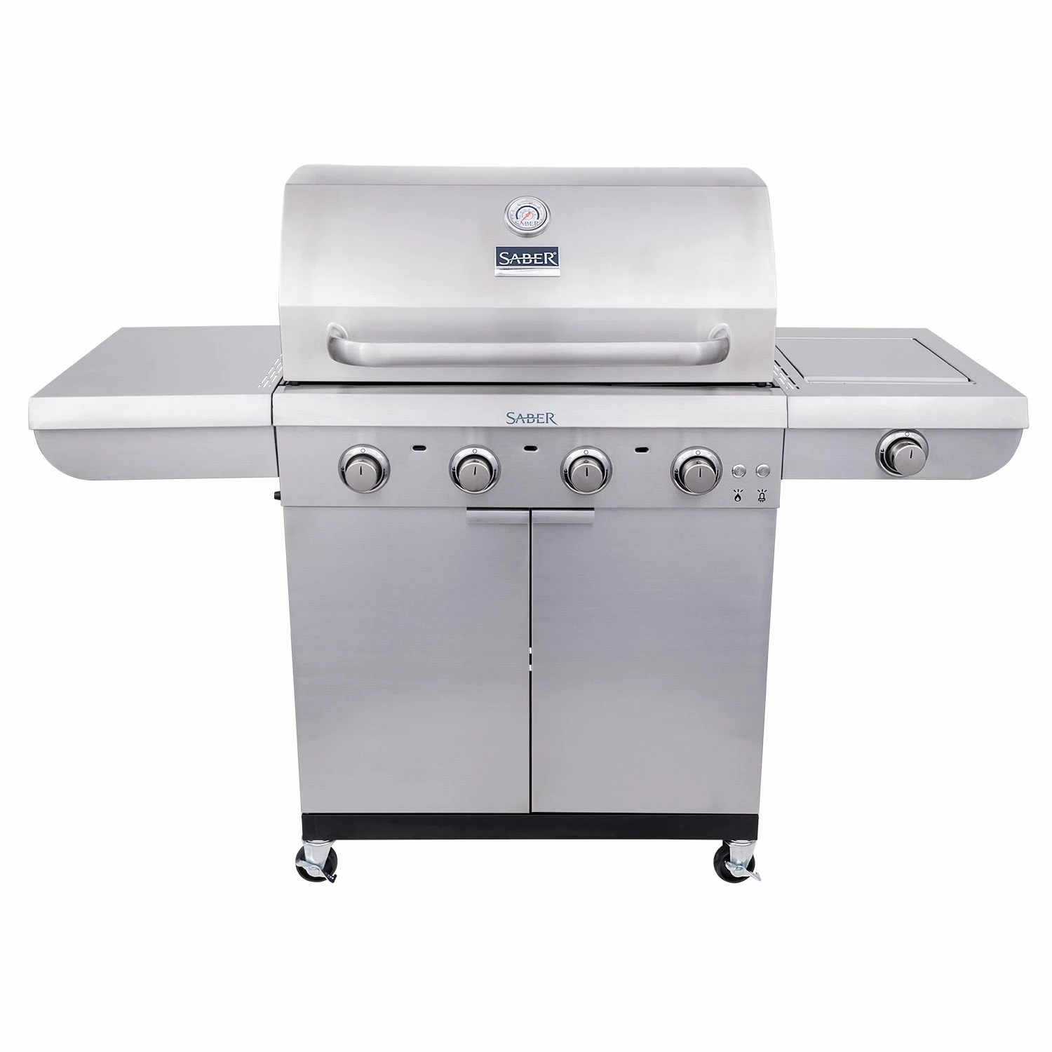 Saber R52SC0421 4-Burner Select Freestanding Infrared Grill with Side Burner, 40-Inches provides a premium addition to your outdoor kitchen. This grill brings restaurant quality results to your home with its patented Saber Cooking System. This innovative burner design heats evenly, eliminates flare-ups, and uses up to 30 percent less gas than comparable burners. This grill also offers a wider temperature range than traditional grills–from high temperature searing to low and slow roasting and everything in between. The Saber infrared can also pre-heat to searing temperatures in only 12 minutes to reduce the time it takes to get your food from grill to plate. When you’re finished grilling, the easy-to-clean design of the Saber grill allows food drippings to be burned off and brushed away with ease to save you even more time.
