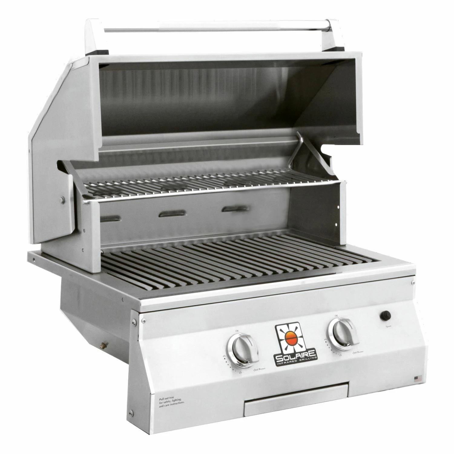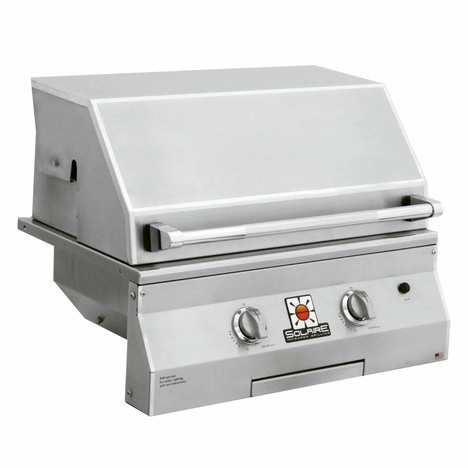 All Solaire grills offer an impressive collection of standard features to stand out from the competition. These grills offer infrared burners with ceramic plates and stainless steel construction for commercial quality cooking potential, while stainless steel V-grilling grates enhance flavor and reduce flare-ups. These impressive appliances offer 304 stainless steel construction with welded seams and no mechanical fasteners to ensure long-term durability, while hand-polished, mirror-finished accents and metal knobs offer an impressive appearance in any setting. A double skin hood with a stay-cool, stainless steel knurled handle offers added safety, while a removable stainless steel warming rack and drip tray offer added versatility and convenience. With their top-supported, self-trimming design, these grills offer easy built-in installation. This grill head can also be placed on a cart if your needs change.